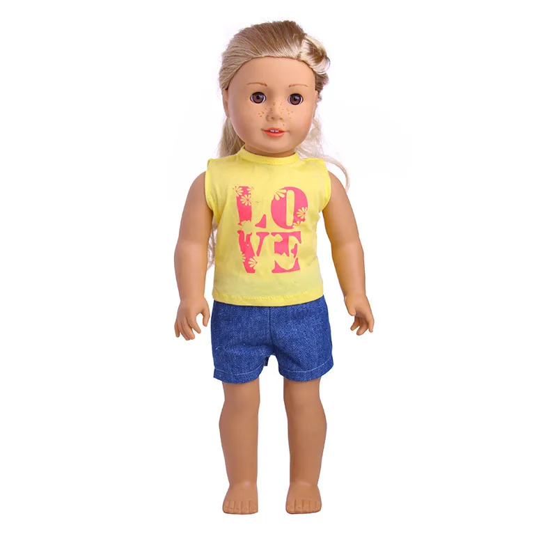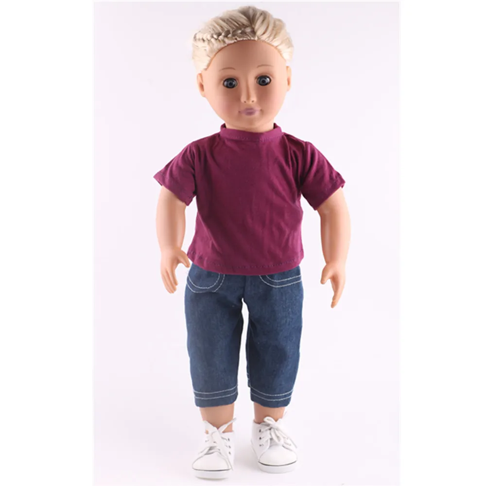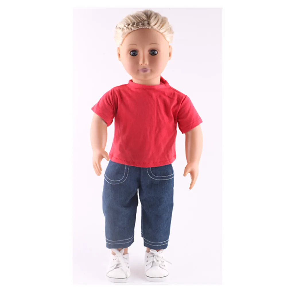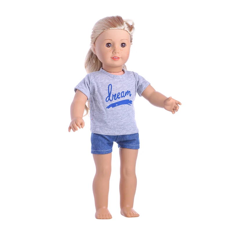 Набор для куклы = футболка + джинсы красивая одежда аксессуары подходит 18 дюймов американский и 43 см Новорожденный ребенок, игрушки для девочек на день рождения, поколение