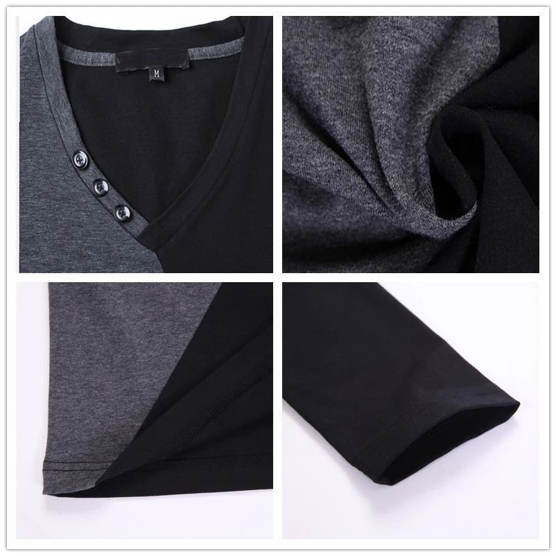 Бренд BROWON, осенние мужские футболки, мода 2022, уличная одежда, длинный рукав, v-образный вырез, цветная Лоскутная хлопковая футболка для мужчин
