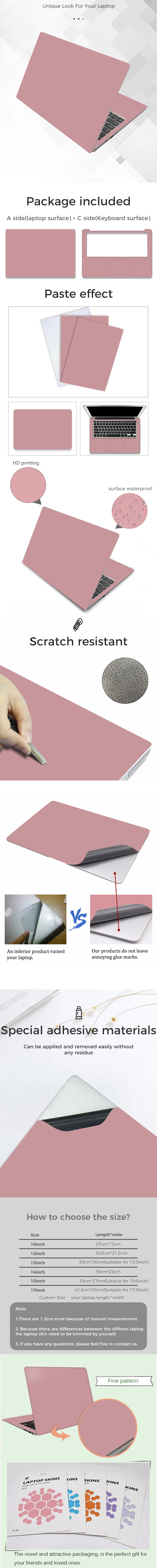 Розовая розовая наклейка для ноутбука, чехол для Macbook, аксессуары, наклейка из кожи, однотонный чехол для ноутбука, ПК, защитная пленкаМы делаем универсальный размер для ноутбука, вы можете измерить длину вашего ноутбука и отправить нам. Чтобы мы могли сделать правильный размер для вас. Или вы можете проверить размер нашего ноутбукаЗащитите поверхность ноутбука от царапин и пятенЛегко наносится и снимается без необходимостиМногоразовые, до тех пор, пока не будет сохранена подложкаМатериал: ПВХ Съемный слой + бумажный слойЛегко наносится, легко снимается и не оставляет липких следов при удалении и обрезке и пошаговая инструкция включает в себя 2 бесплатных запястьяМатовое ламинированное защитное покрытие без бликовДоступно в различных цветах и дизайнахШкуры ноутбука многоразовые, УФ-защита, нетоксичные и экологически чистые Есть 2 варианта