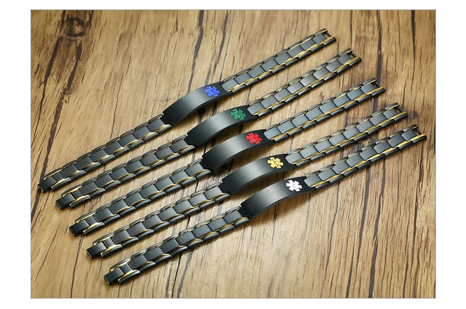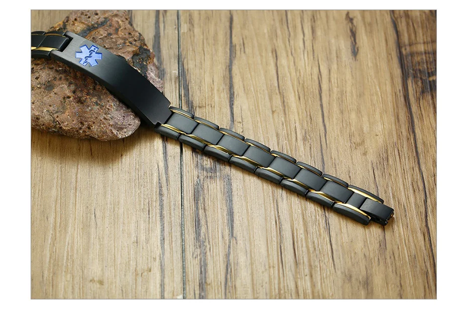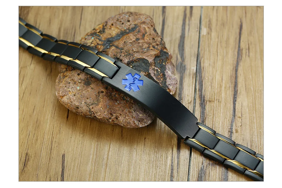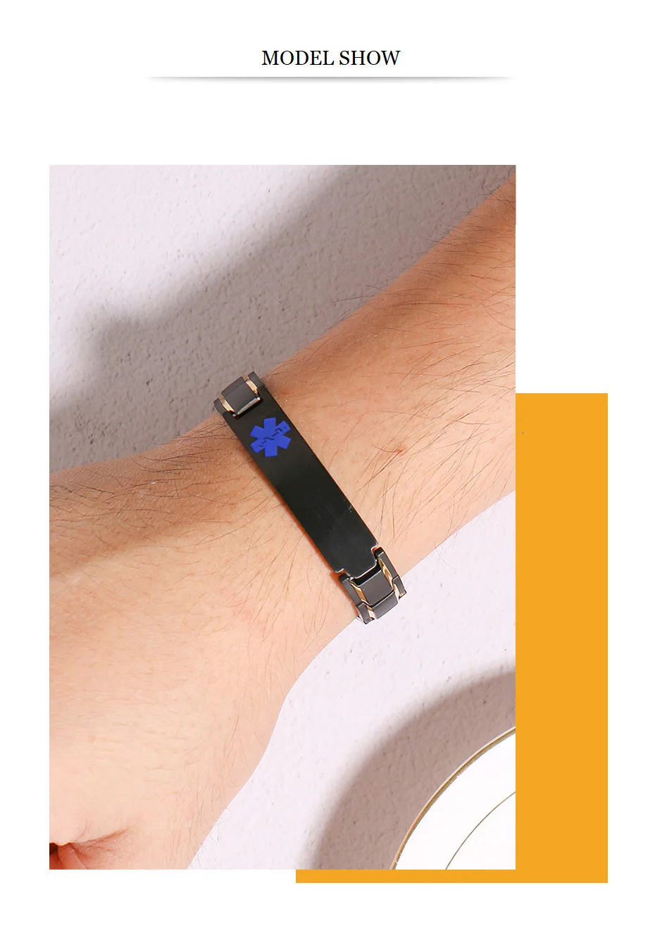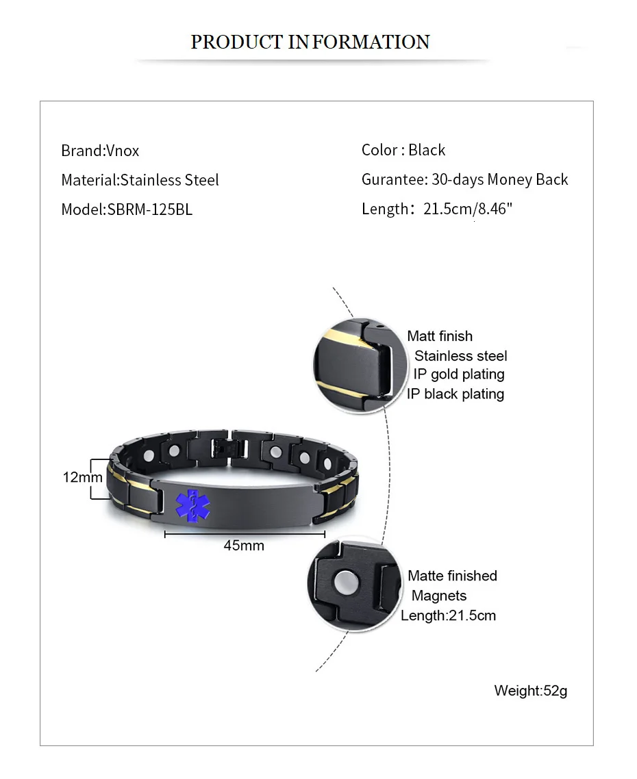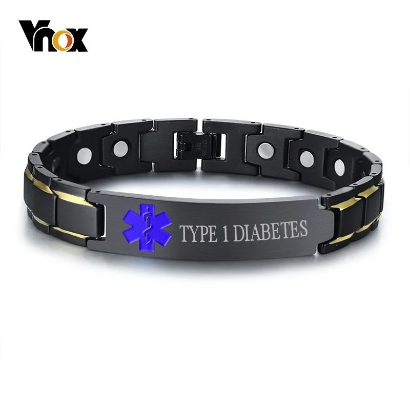 Мужские медицинские браслеты с идентификатором Vnox, тип 1, с бесплатной гравировкой, из нержавеющей стали, лечебные украшения