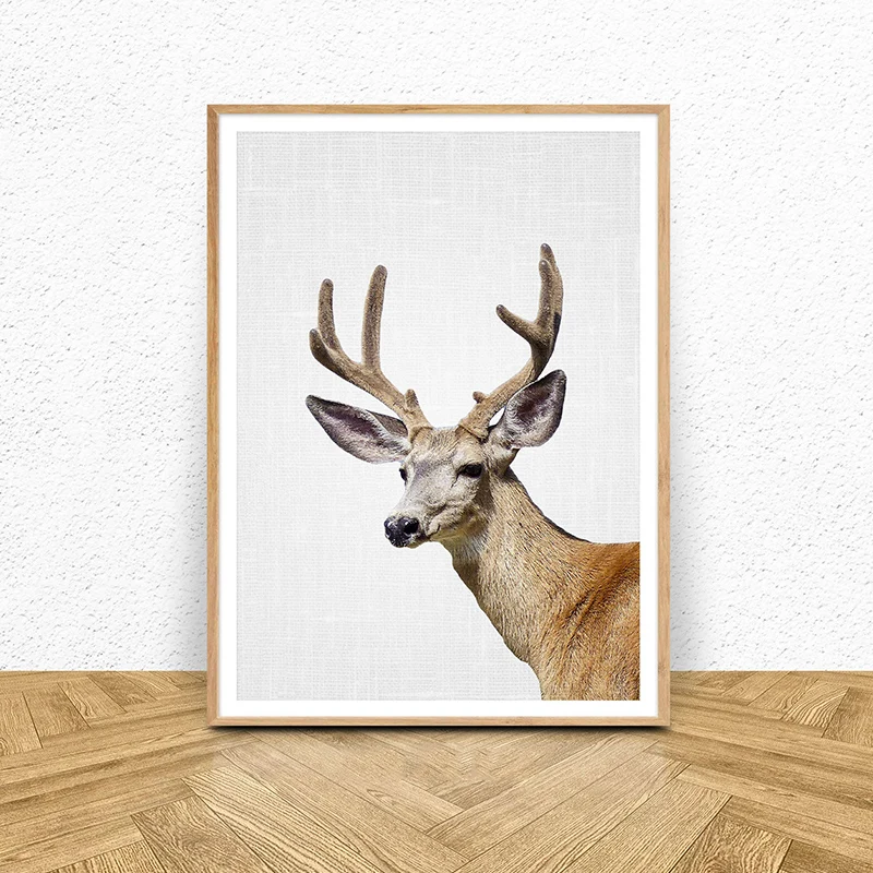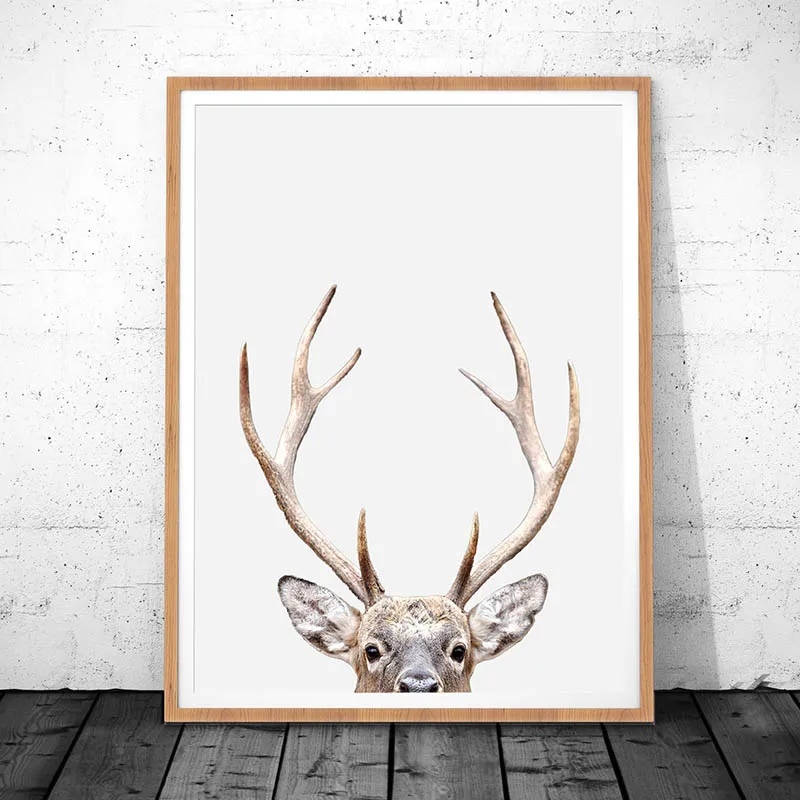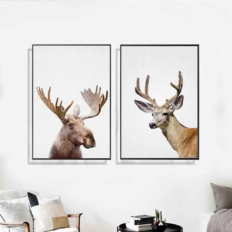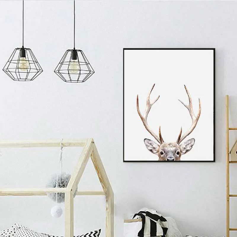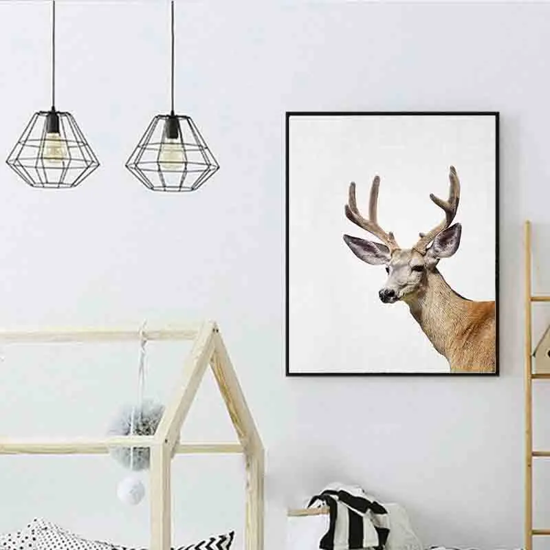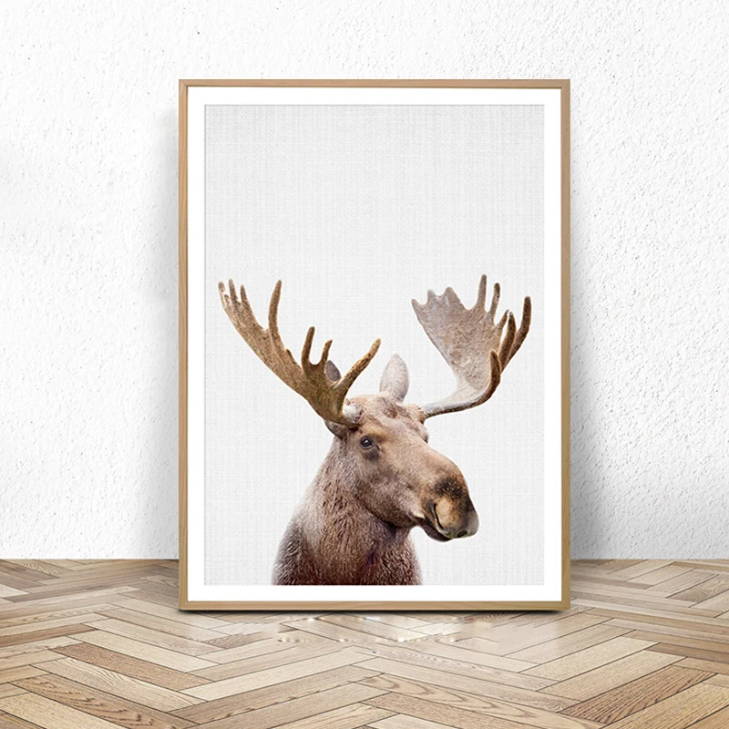 Детский Moose рисунок оленя на холсте Kawaii настенное искусство постер животных Печать скандинавский лесной рисунок для детейДомашний декор для маленьких девочек
