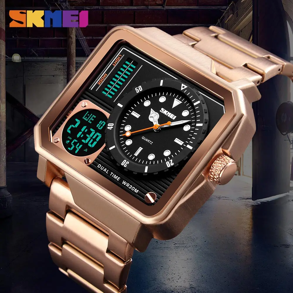 SKMEI цифровыеКварцевые часы для мужчин с ремешком из нержавеющей стали, наручные часы с двойным дисплеем, мужские часы, часы Relogio Masculino 1392