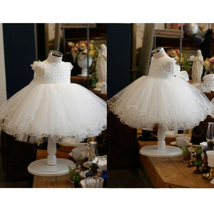 Новое модное платье с блестками и цветочным рисунком для девочек белое платье принцессы из тюля для крещения и первого дня рождения