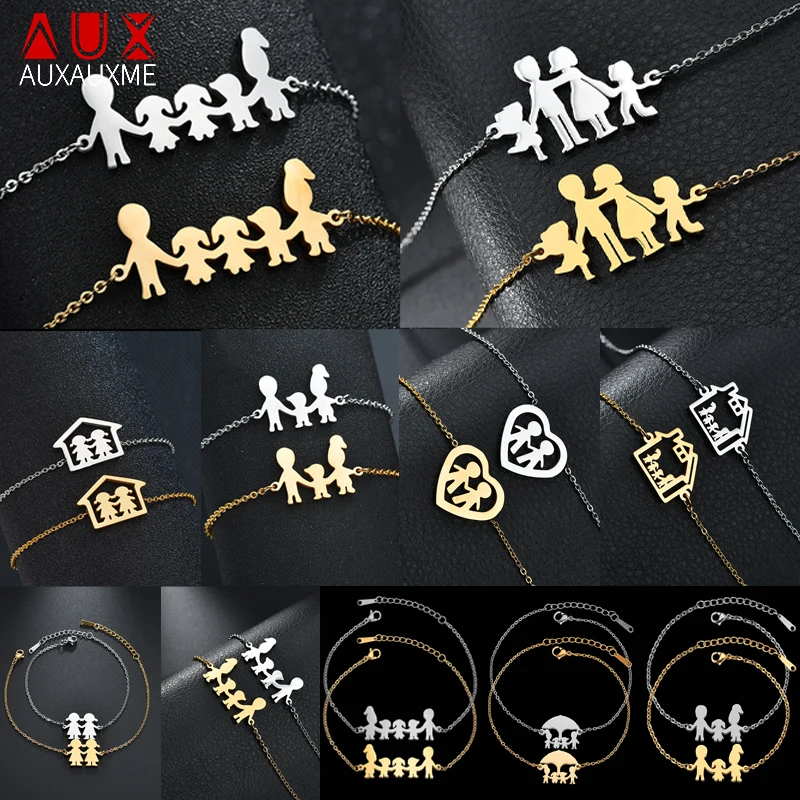 Auxauxme Высококачественный Браслет из нержавеющей стали для всей семьи папа мама девочка мальчик семейный подарок простой стиль браслет с фигуркой