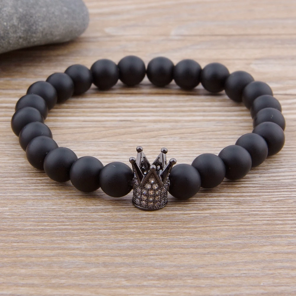 Браслет XQNI из натурального лавы, черный цвет, 8 мм камень, Корона...