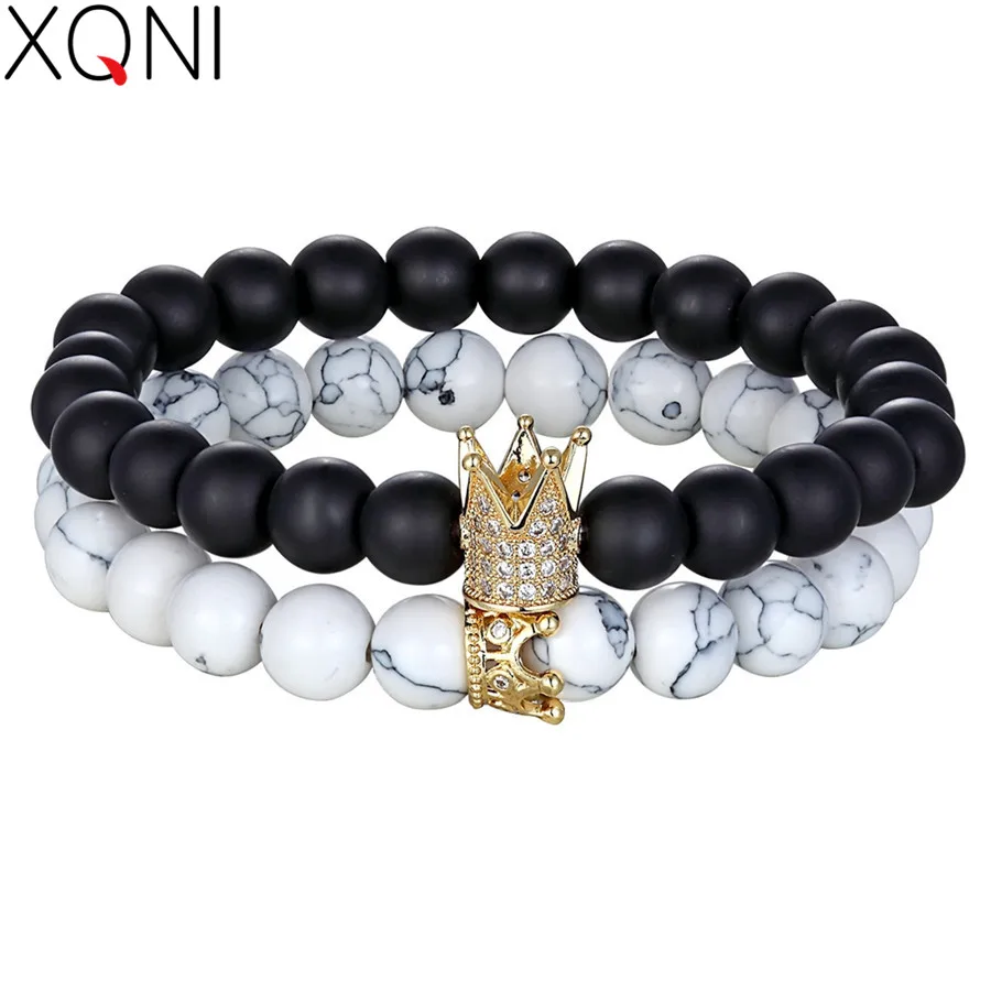 XQNI Новый Стиль подставка бусины для женщин унисекс Инь Янь браслеты из бисера матовый оникс Камень и белый стиль