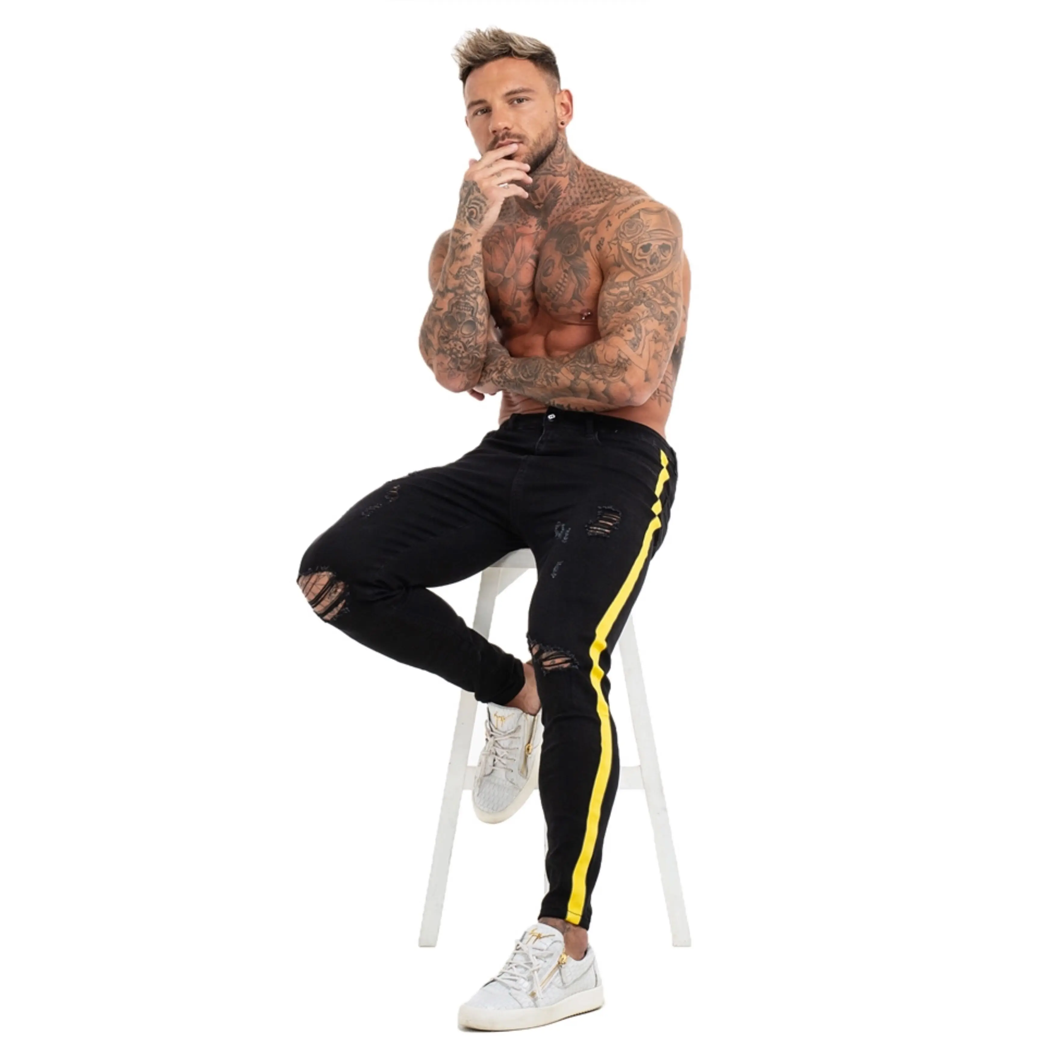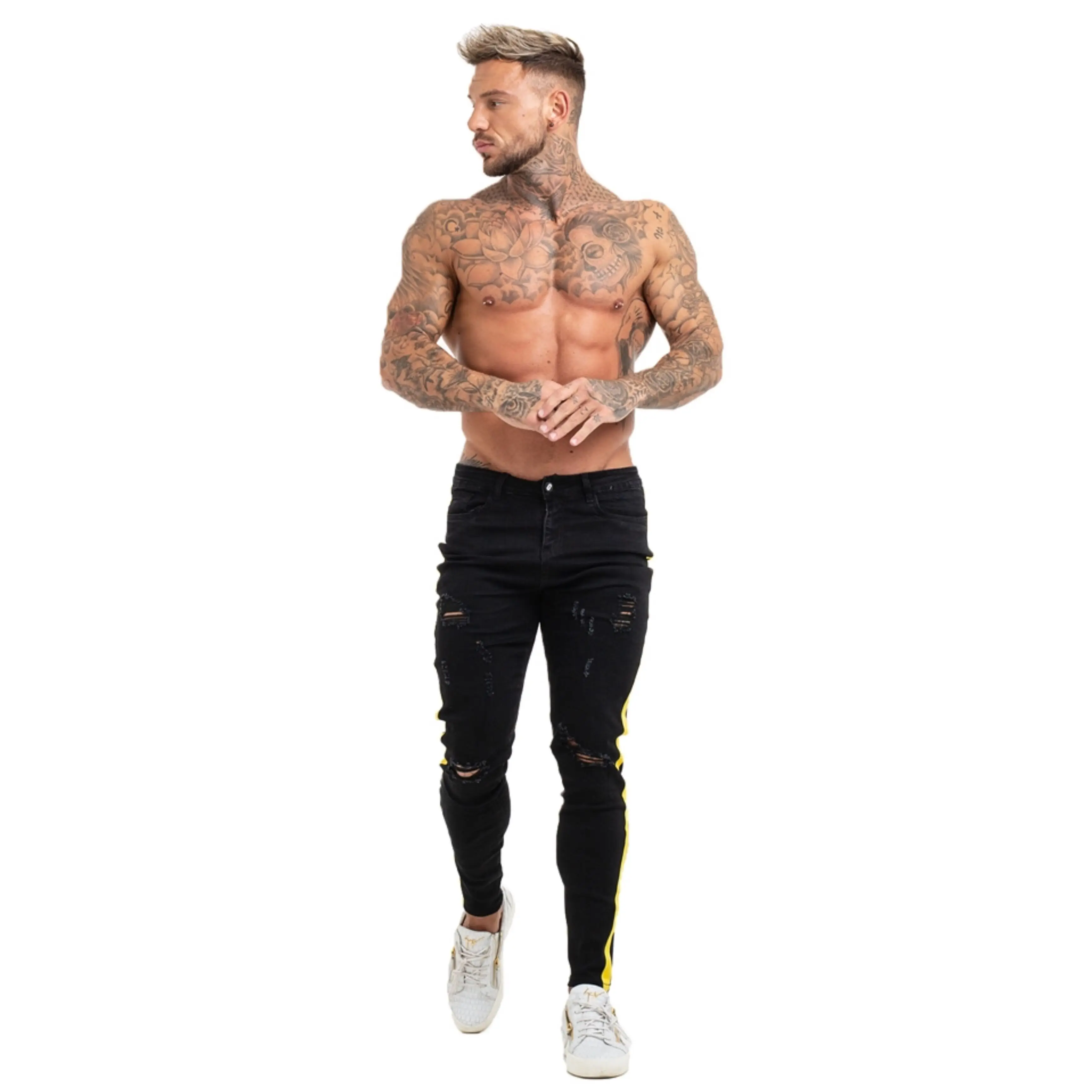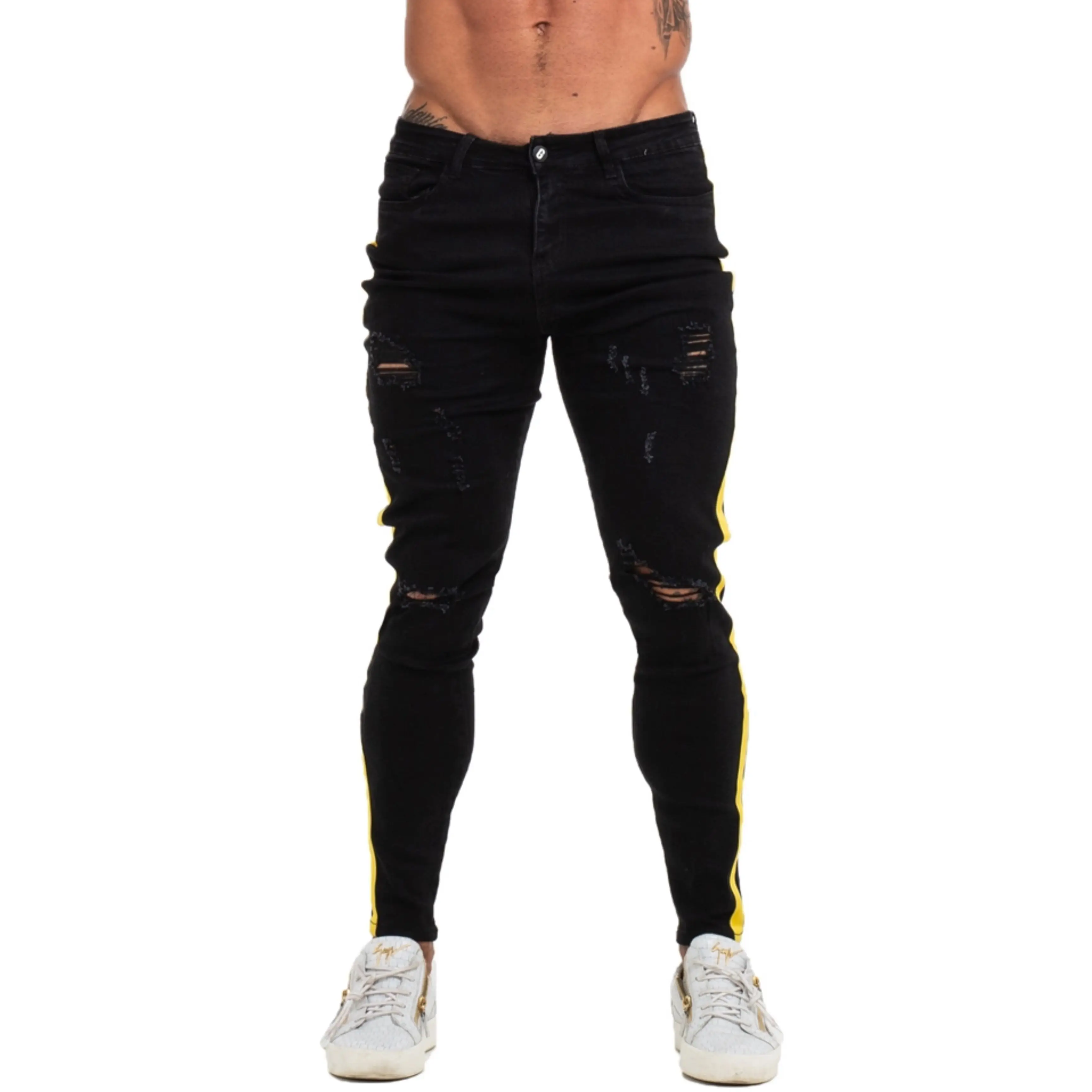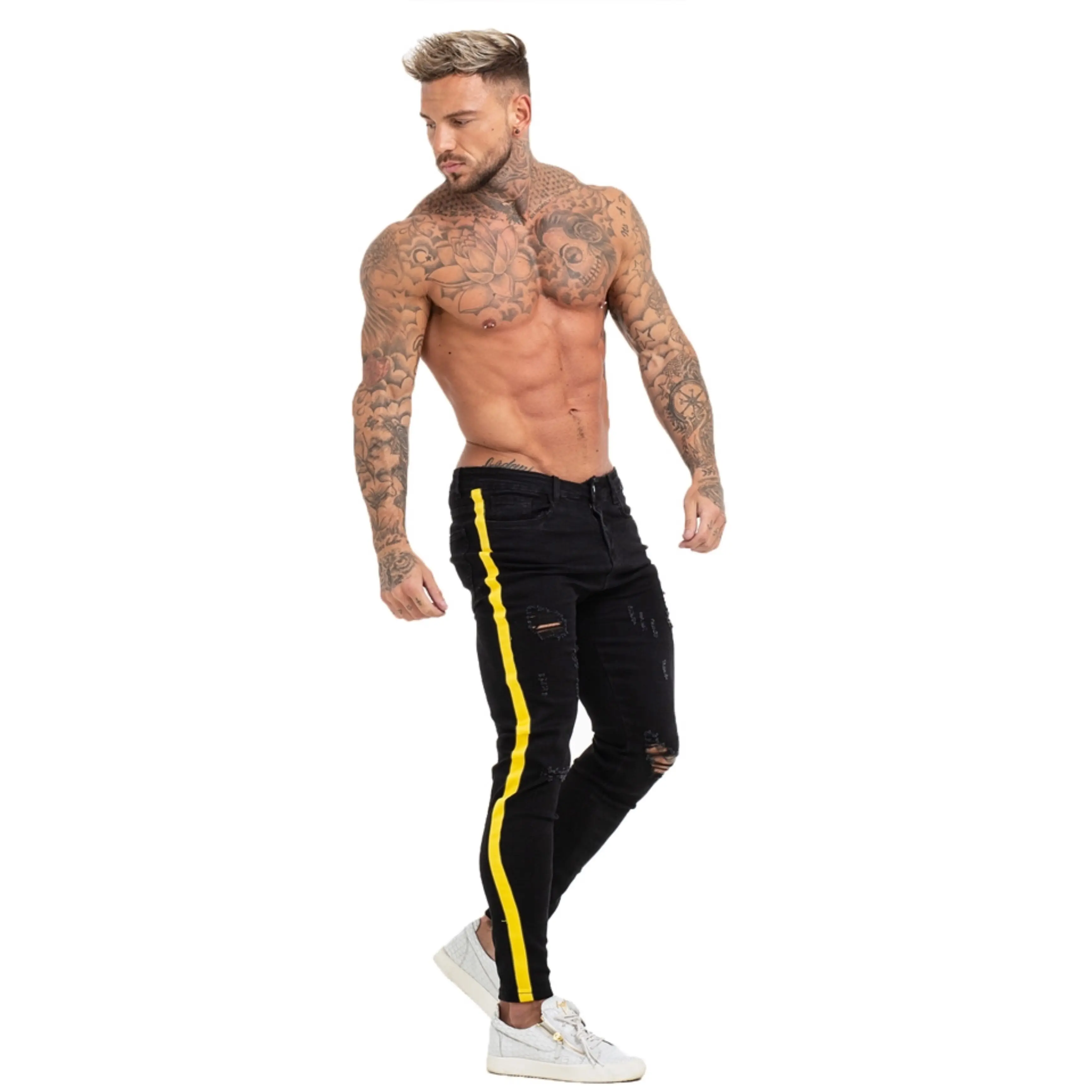 Джинсы скинни GINGTTO мужские, брендовые зауженные джинсы из денима, классические узкие джинсы в байкерском стиле, в стиле хип-хоп, с эластичной лентой, zm68, черные