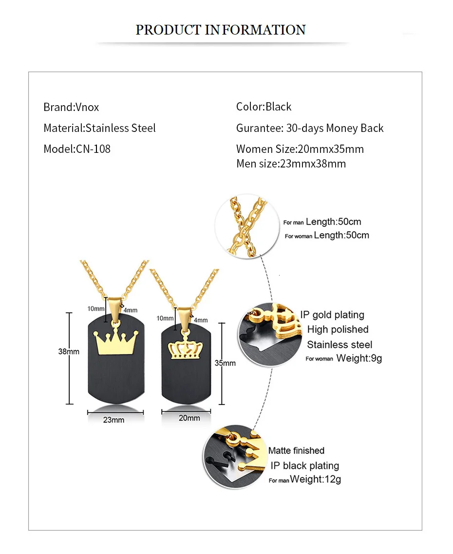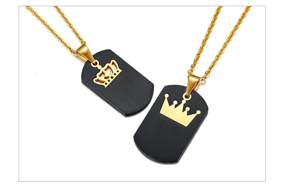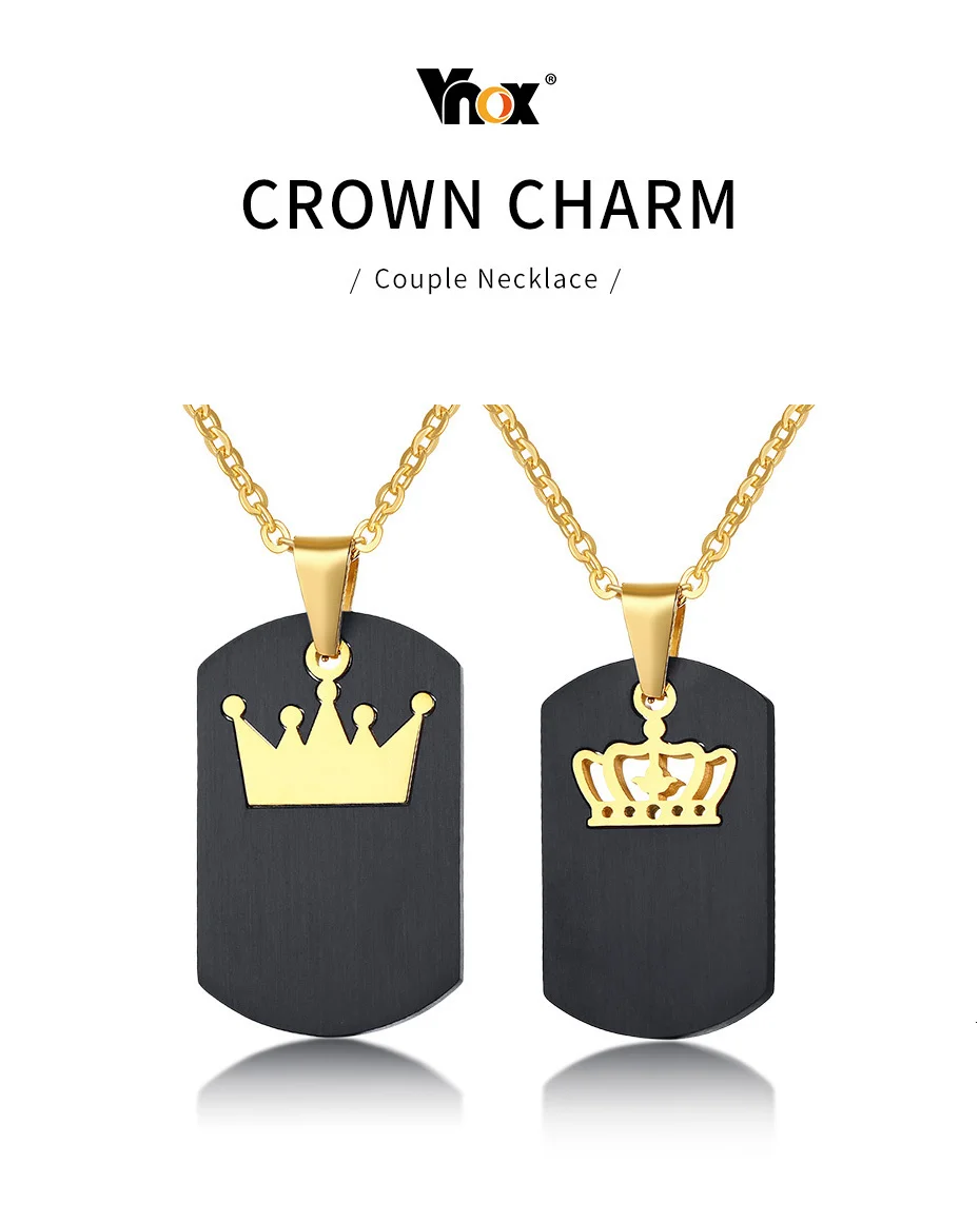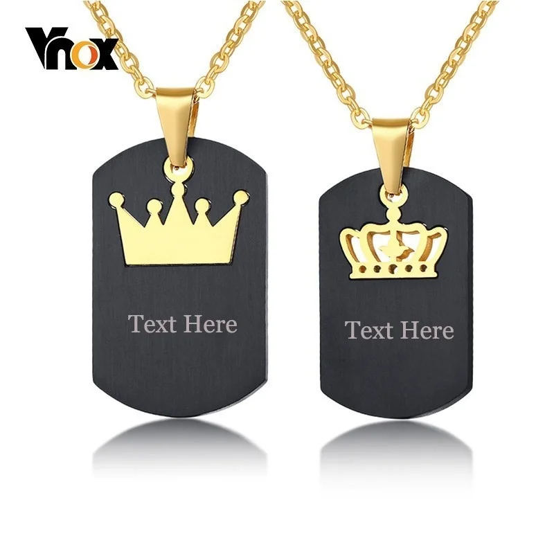 Ожерелья для собак Vnox из черной нержавеющей стали, очаровательные кулоны с Королевской короной, любовь, бирка с бесплатной гравировкой в подарок