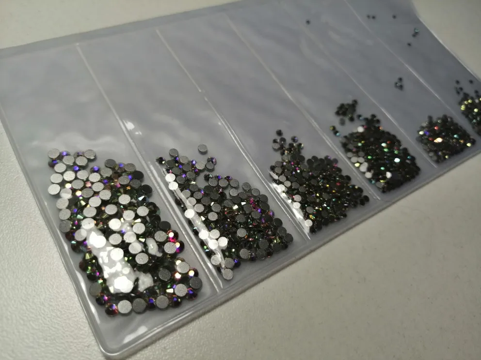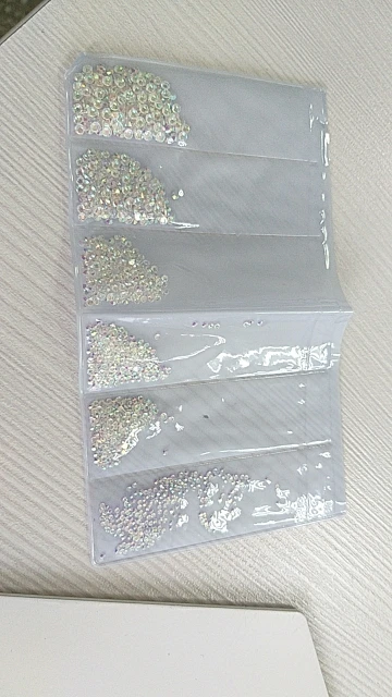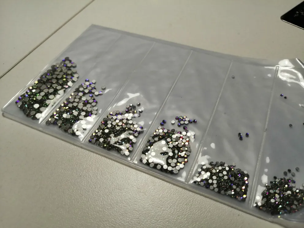 замечательные стразы, тщательно рассортированные по размеру и запаянные в толстенькую полиэтиленовую пленку, одна сторона которой матовая и шершавая, вторая гладкая прозрачная. Конечно, надо будет пересыпать в спец. контейнер, но пока и так поживет, родная упаковка надежная. Брала несколько цветов, все очень нравятся!