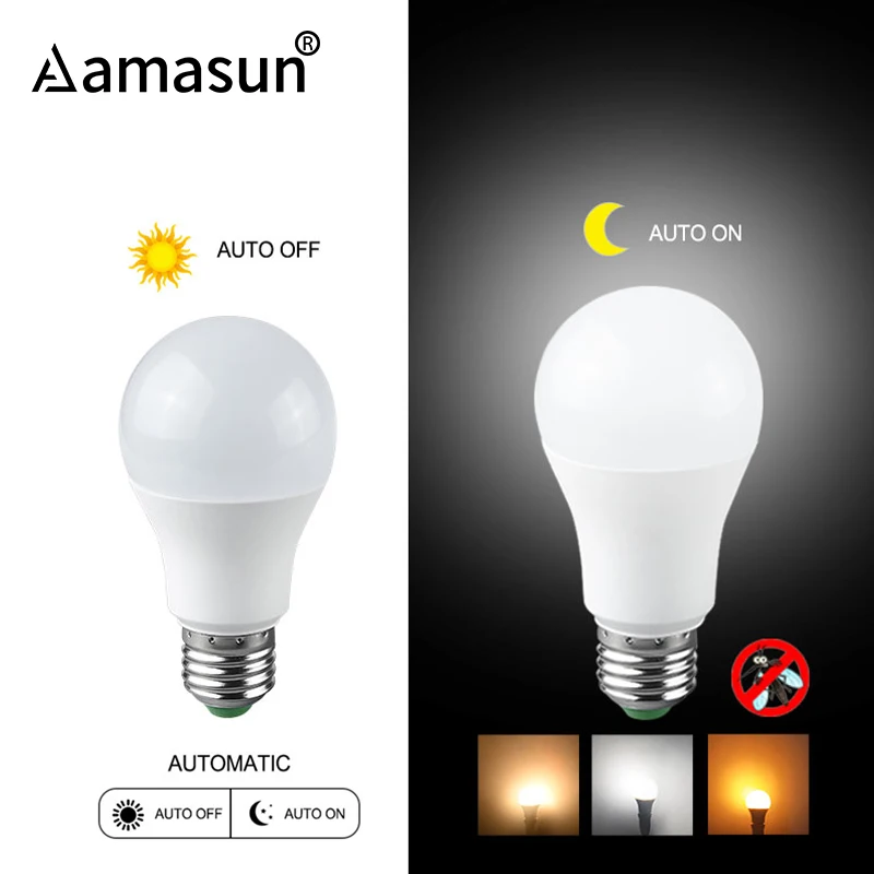 Автоматическая светодиодная лампа E27 с датчиком включениявыключения, 85-265 в, светодиодная лампа для ночного освещения от заката до рассвета, для крыльца, патио, двора, гаража, сада, B22