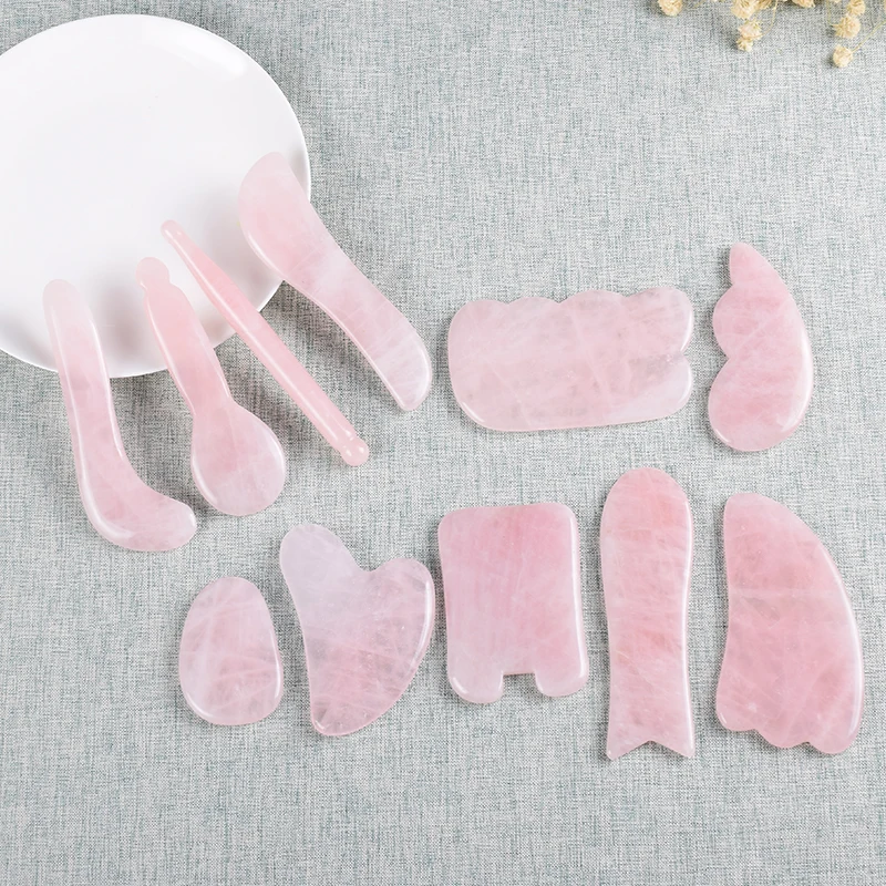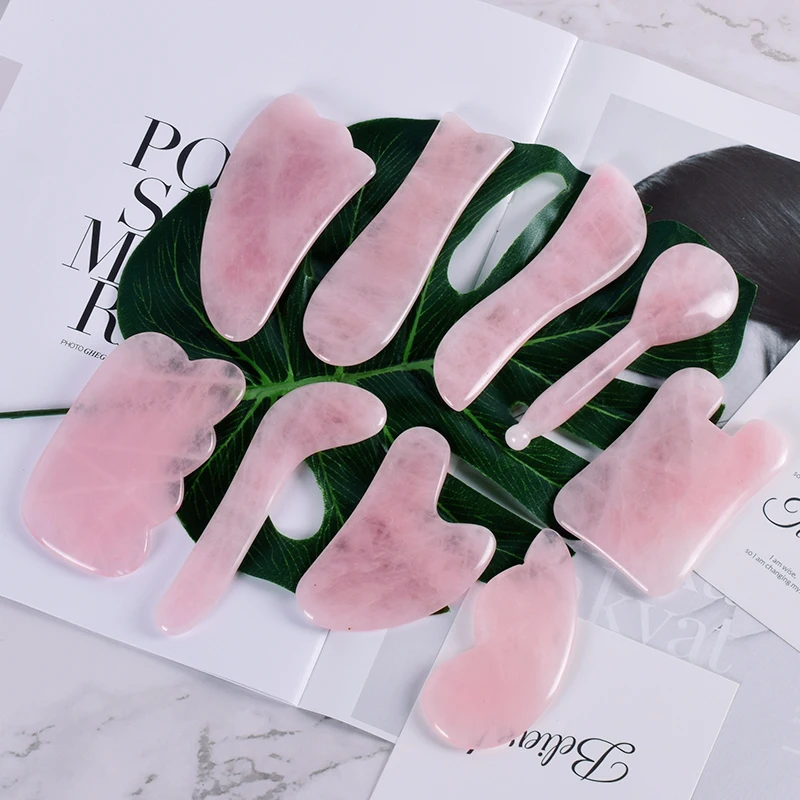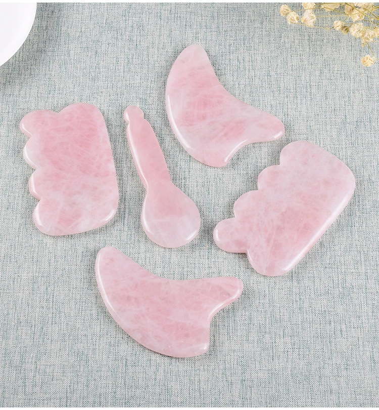 Массажер для лица гуаша из натурального розового кварца, 1 шт.