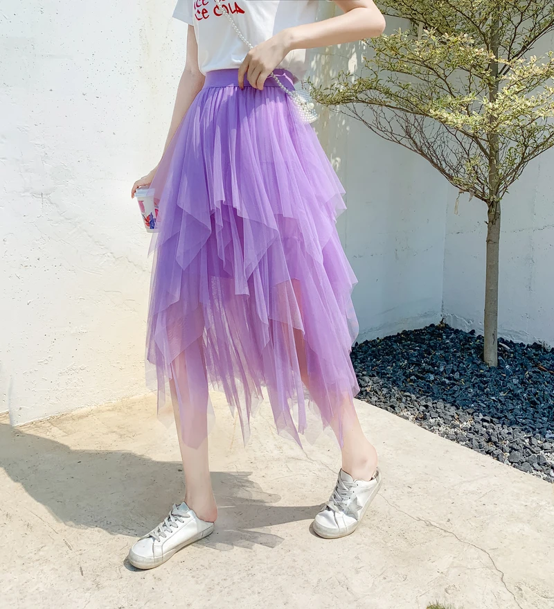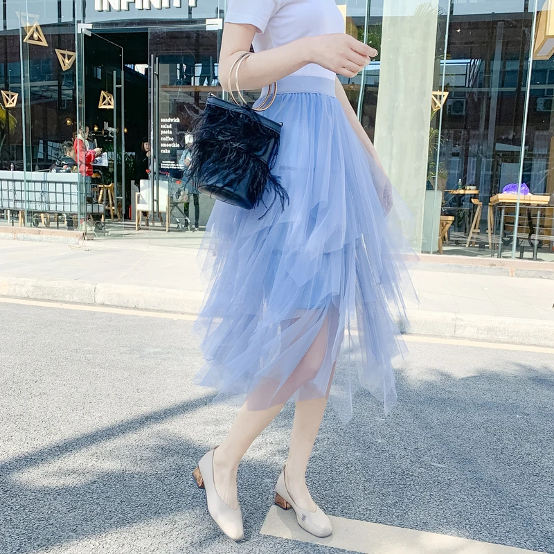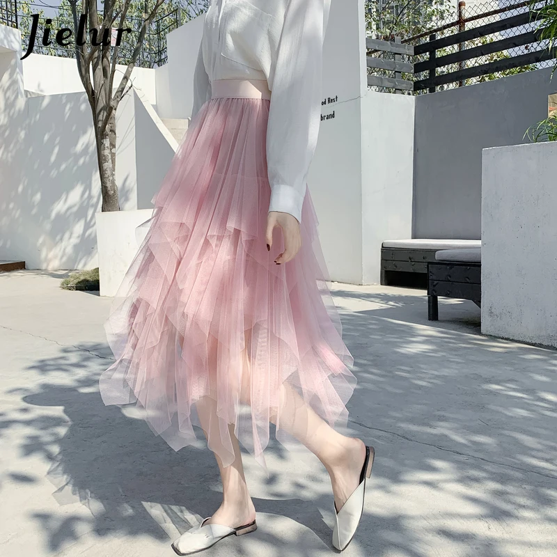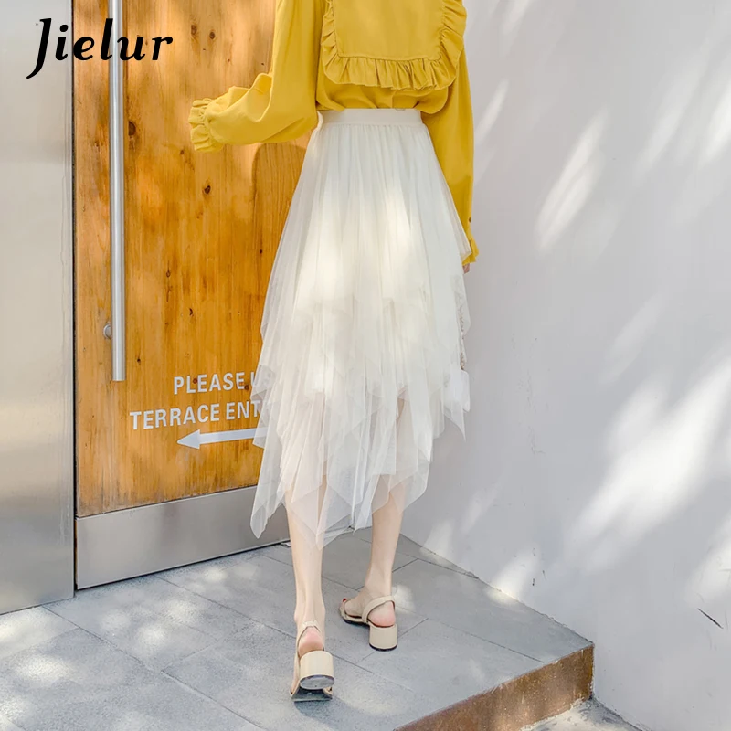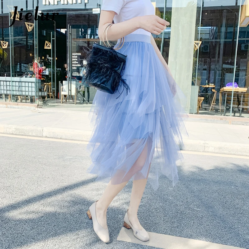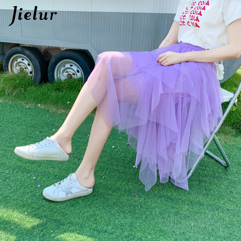 Женская Асимметричная юбка Jielur, однотонная летняя юбка в стиле Харадзюку, винтажная длинная юбка