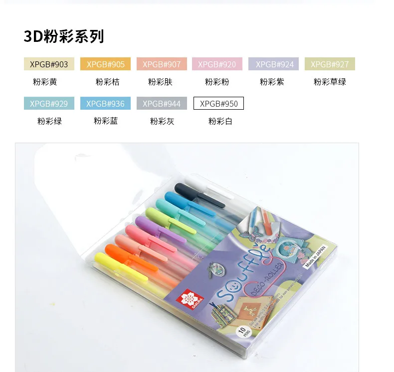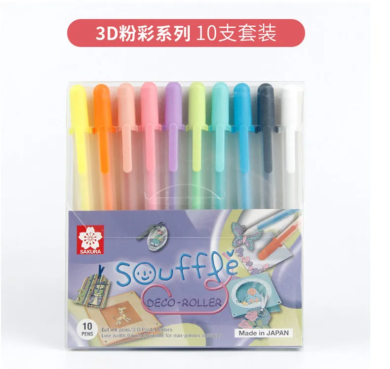 Набор гелевых чернильных ручек Sakura Gelly для 3-D пастельных цветов ширина линии 0,6 мм 10 ручек