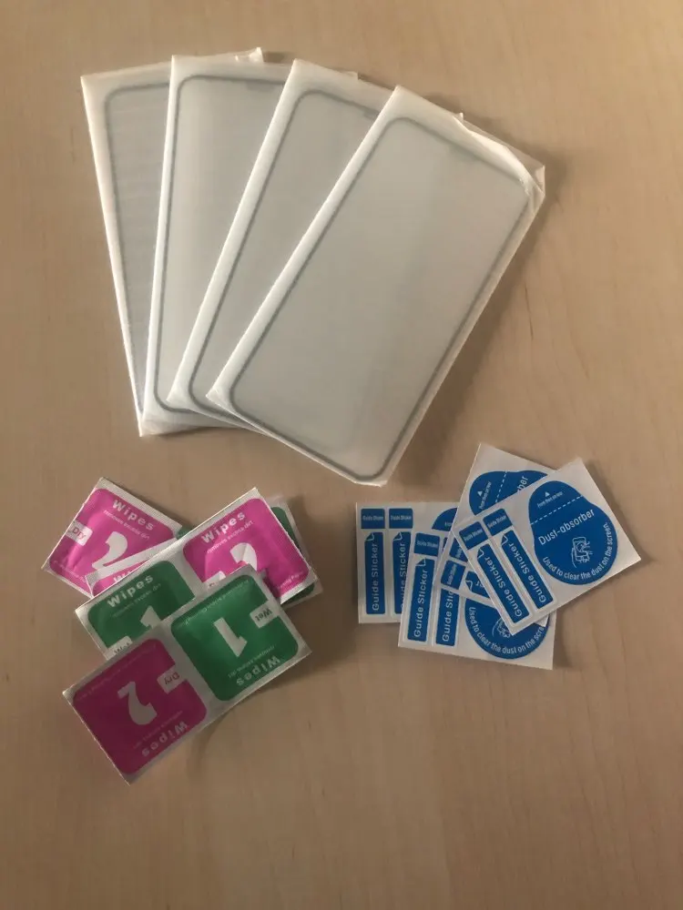Заказала 3 стекла для айфона xs, пришли очень быстро (от недели до двух). стекла чуть тоньше оригинальных, но с рамкой. В комплекте салфетки и наклейки для бесконтактного наклеивания стекла на экран.