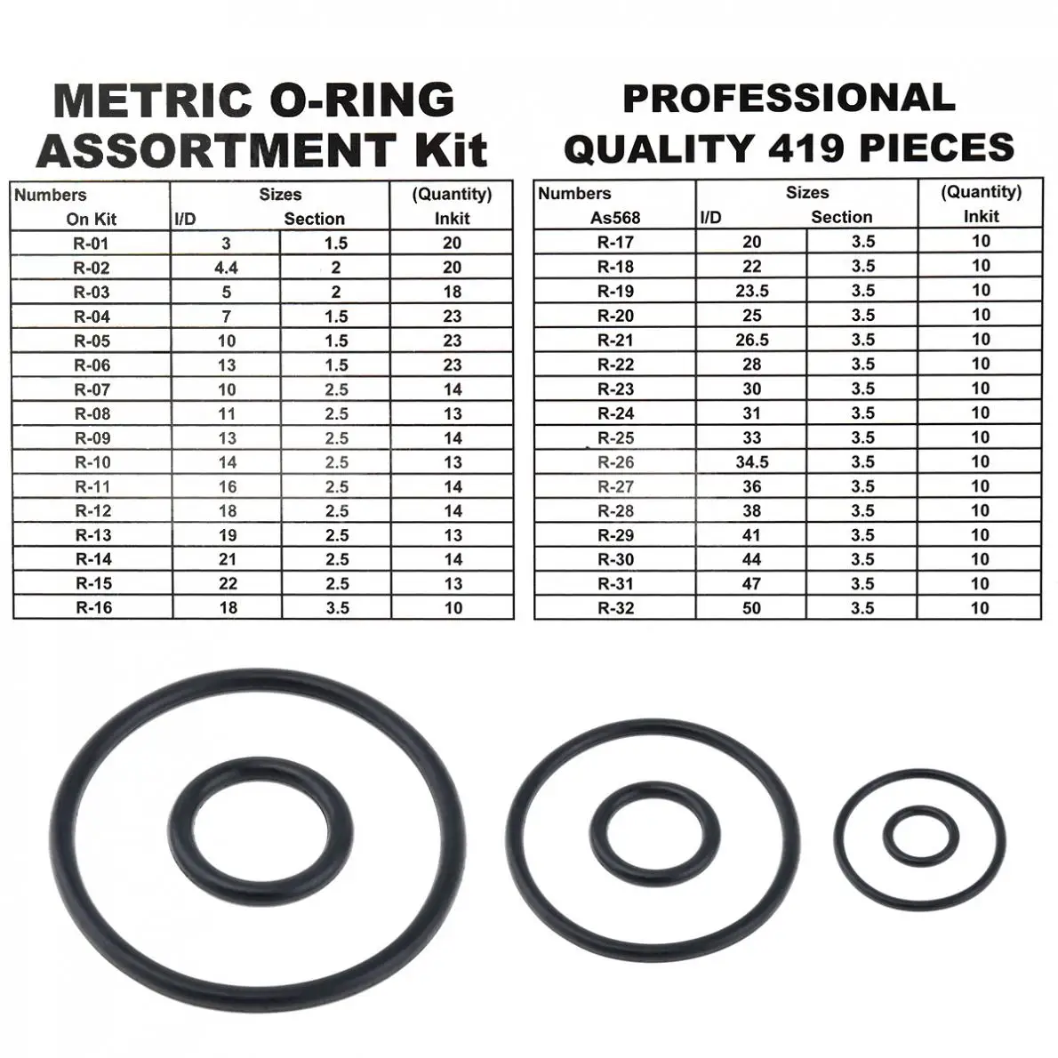 Уплотнительное кольцо резиновое в ассортименте, 419 шт., сантехническое кольцо, универсальный метрический комплект с пластиковым лотком