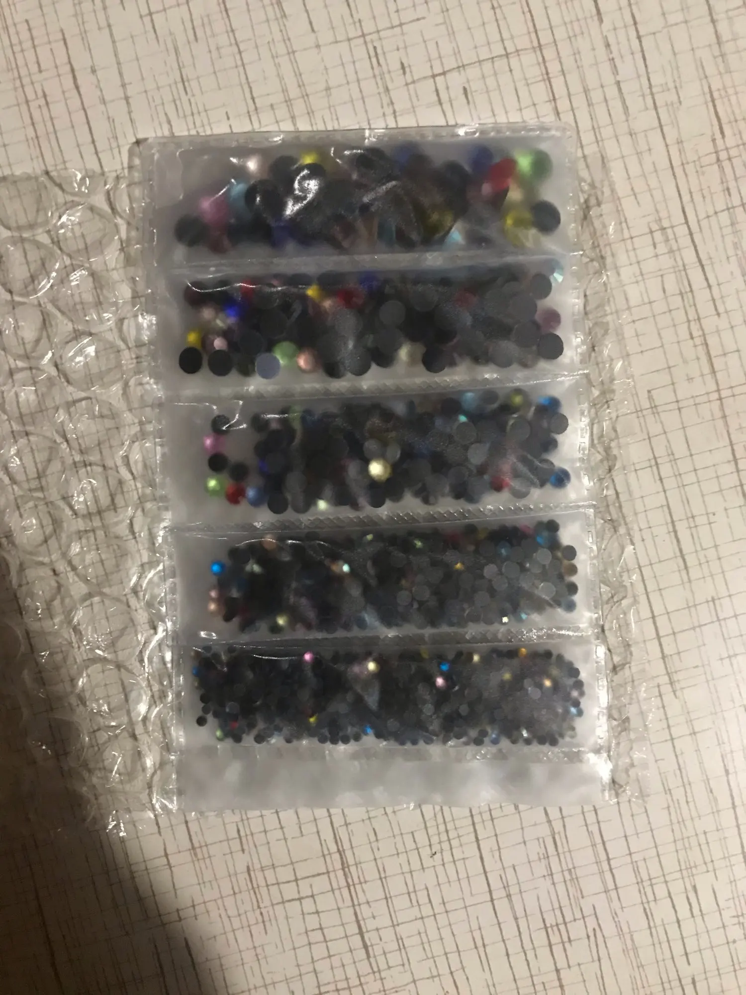 Симпатичные стразы, как в описании. Хорошо что объединили три посылки в одну.