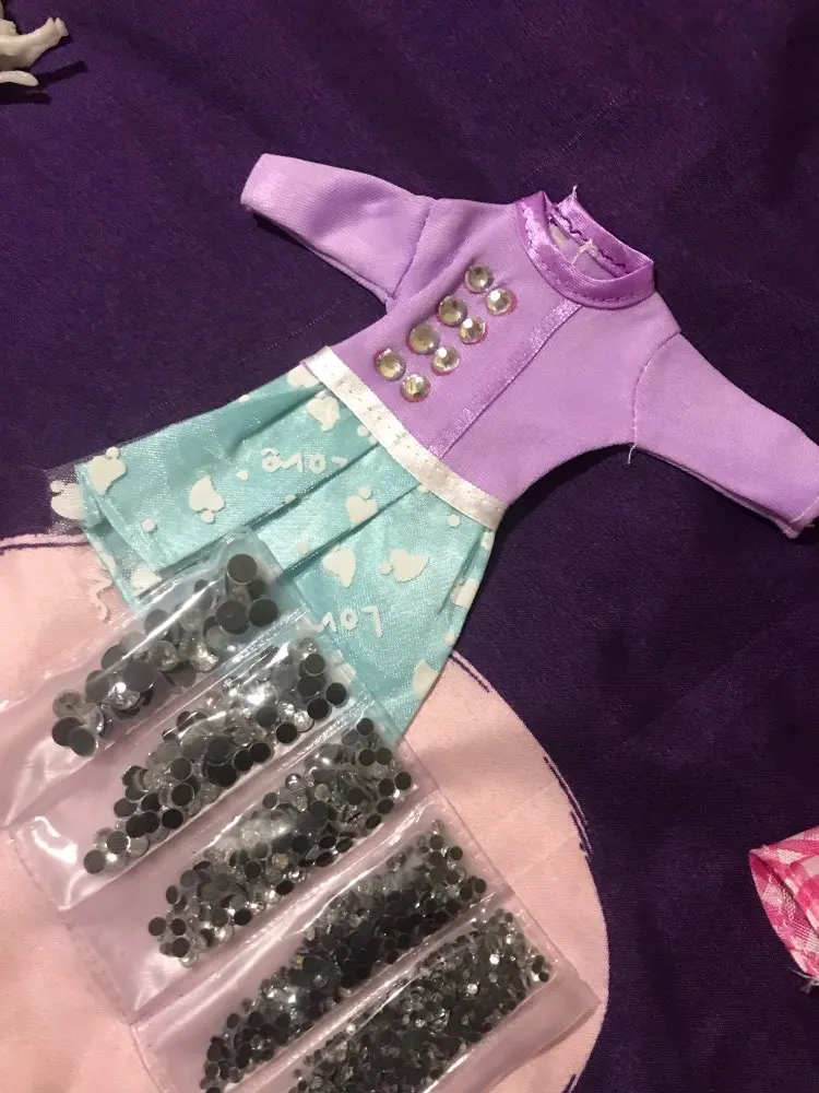 Стразы красивые. Количество не считала))) декорировала платье куклы самыми крупными. Гладила через платок минуты 3 с отпаривателем. Обычной глажкой клей на стразах не плавился. Вроде держаться и надеюсь не отвалятся)))