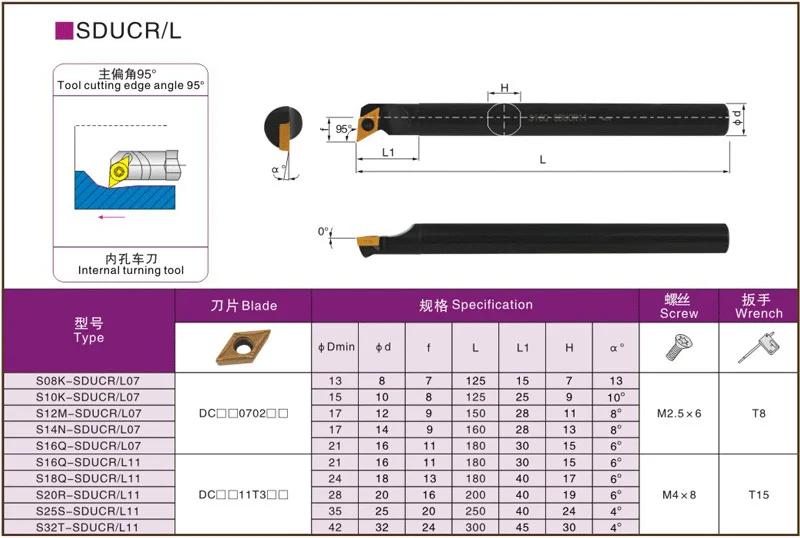Держатель спирального токарного инструмента S08K, S10K, S12M, 95 градусов, Расточная штанга, используемая для DCMT070204, карбидные инструменты, режущий инструмент