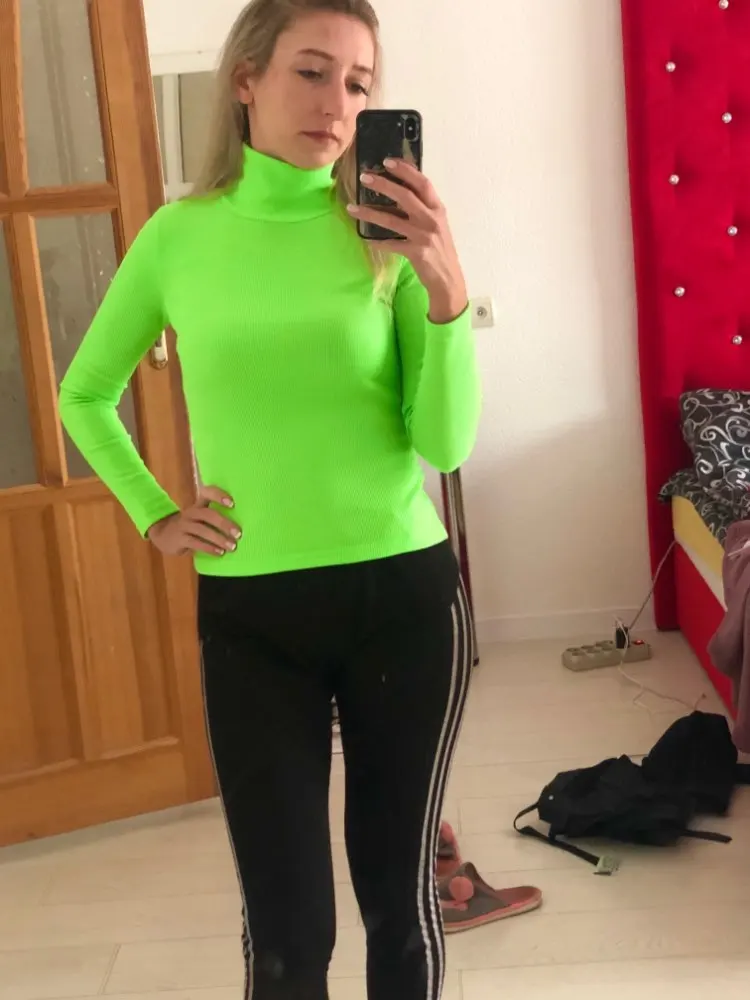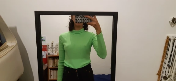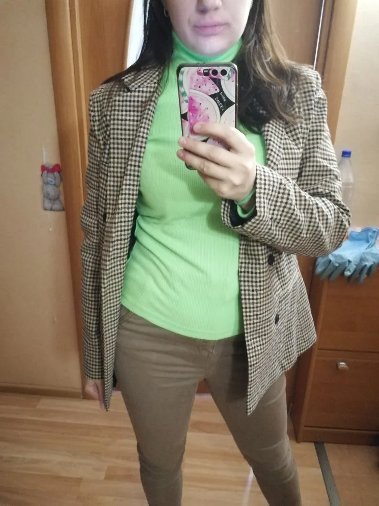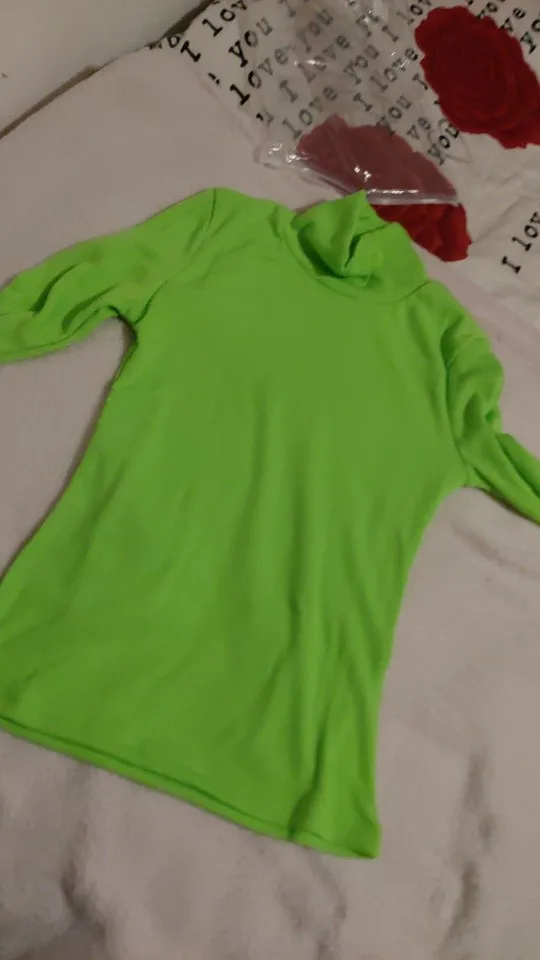 Кофточку доставили за 24 дня в совместной посылке с другими заказами. На параметры обхват груди 90 талиии 78 и обхват бедер 95 размер L подошёл идеально. Была удивлена очень хорошим качеством водолазки. Нитки не торчат ничем не пахнет, швы обработаны аккуратно. Короткий воротник, но подворачивать не нужно, что тоже понравилось. Ткань синтетика, но очень мягкая и приятная к телу. Цвет ярко зеленый как на фото продавца, мои фото не передают реальный цвет. Потом обязательно сделаю фото как водолазка выглядит на мне и дополню отзыв. Мне понравилась кофта, тем более я её покупала специально к кепке такого же цвета. Цвета совпали, что порадовало. Всем советую, а продавцу спасибо.