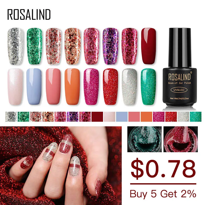 Гибридный Гель-лак ROSALIND, полуперманентный маникюрный набор для ногтей, Гель-лак, базовое и верхнее покрытие