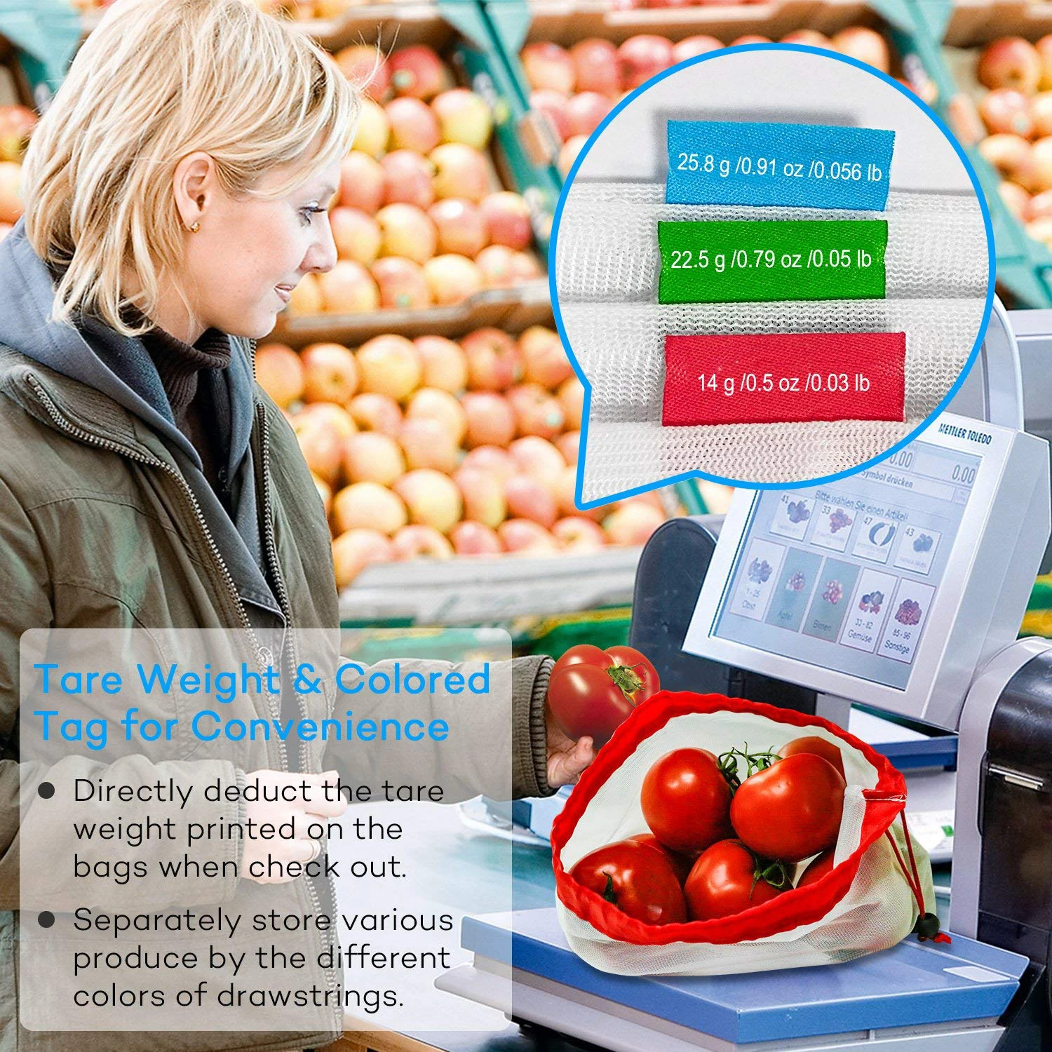 Многоразовые сетчатые продуктовые мешки FGGS, 9 шт., высокопрочная светильник легкая сетка для продуктов, многоразовая одноразовая бирка для тарирования