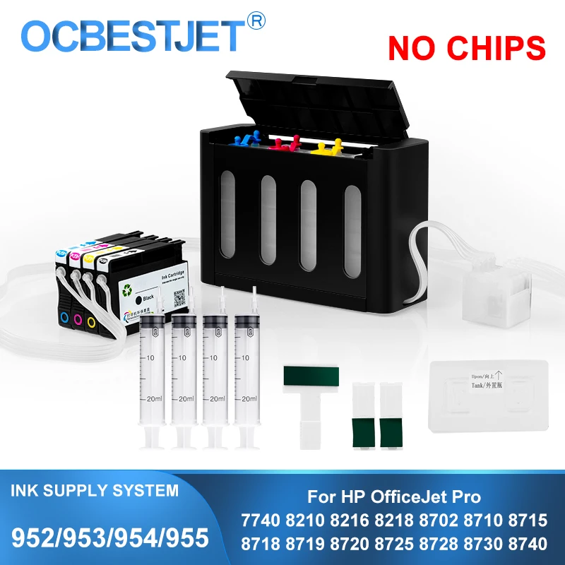 Система непрерывной подачи чернил для HP 952 953 954 955 952X 953X 954X 955X CISS, без чипов, для HP 7740 8210 8710 8720 8730 8740