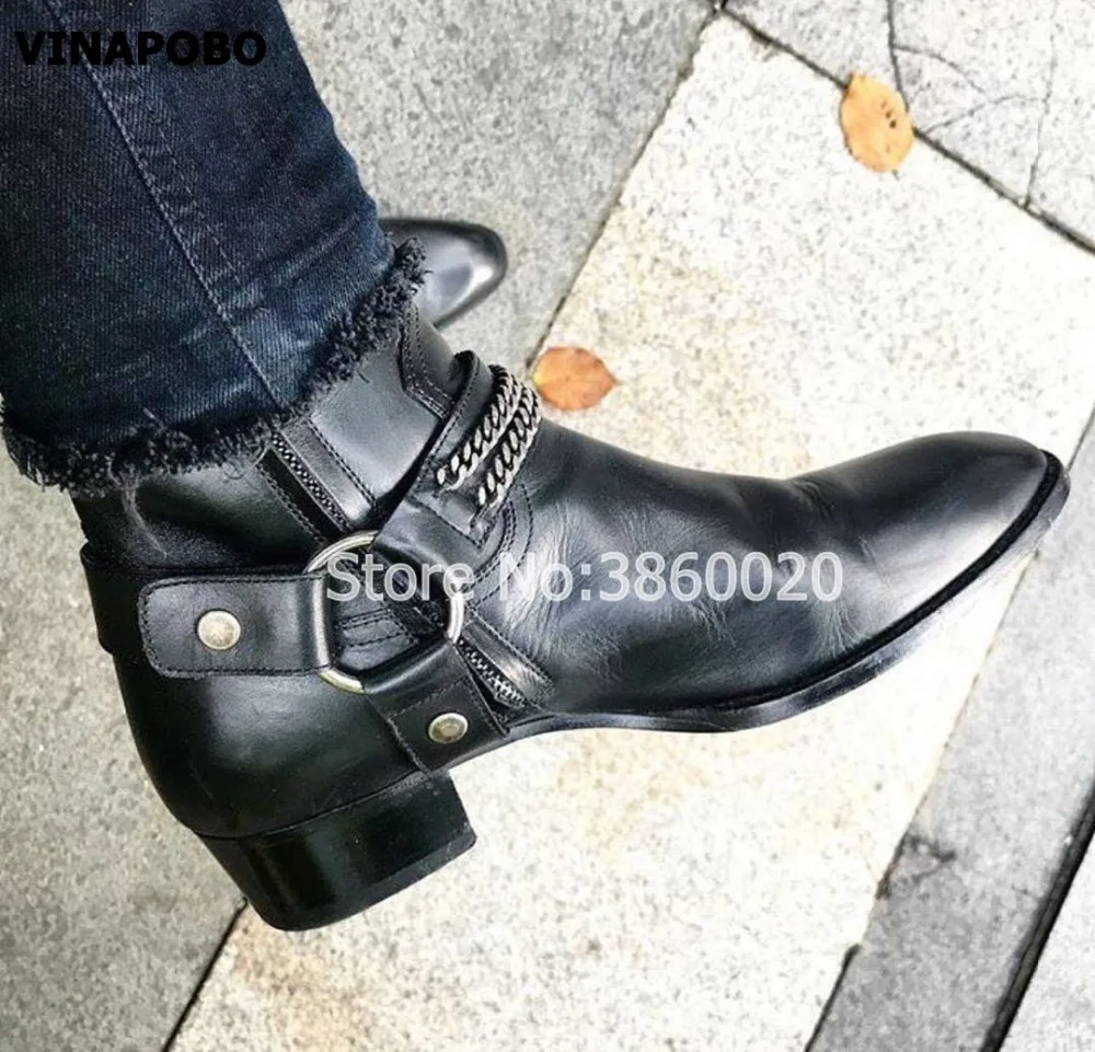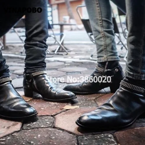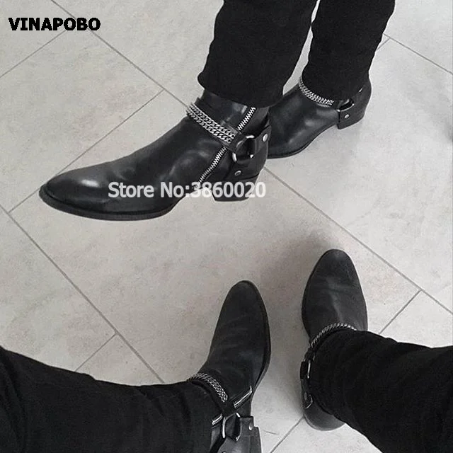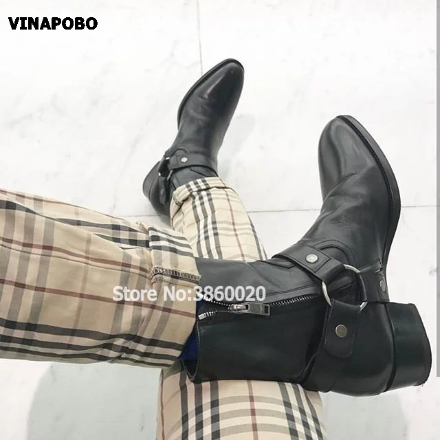 Ботинки-челси VINAPOBO мужские из натуральной кожи, лоферы на плоской подошве, с ремешком и пряжкой, роскошные брендовые, черные, 2018