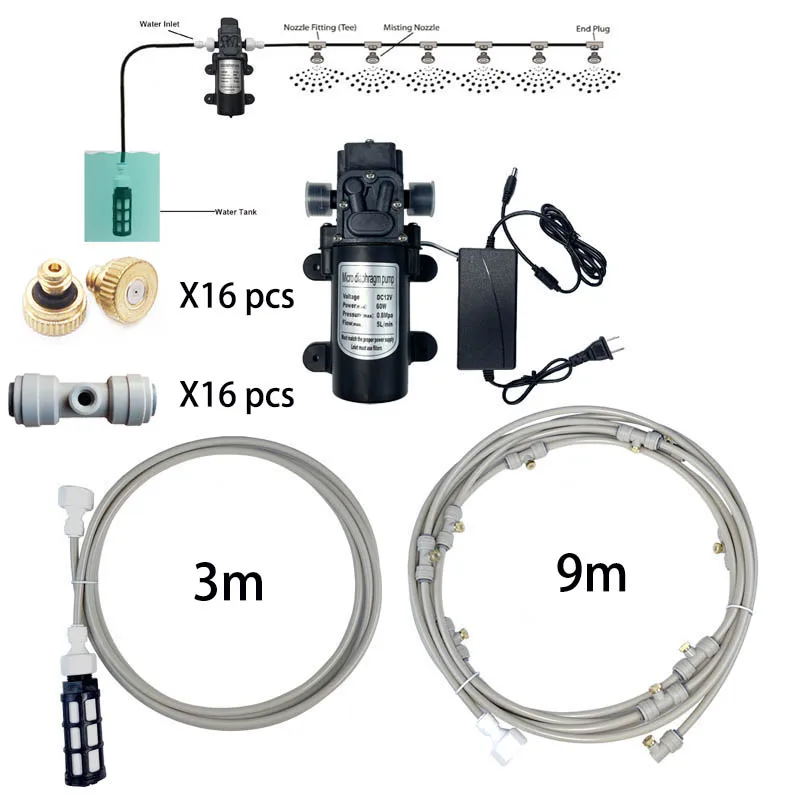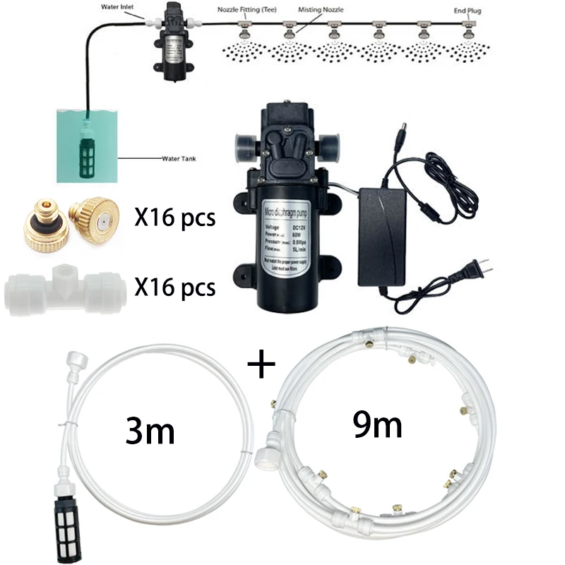 Насос для запотевания, 12 В, распылитель водяного насоса фунтов на квадратный дюйм, диафрагма, 20-40 футов, 6-16 форсунок для запотевания