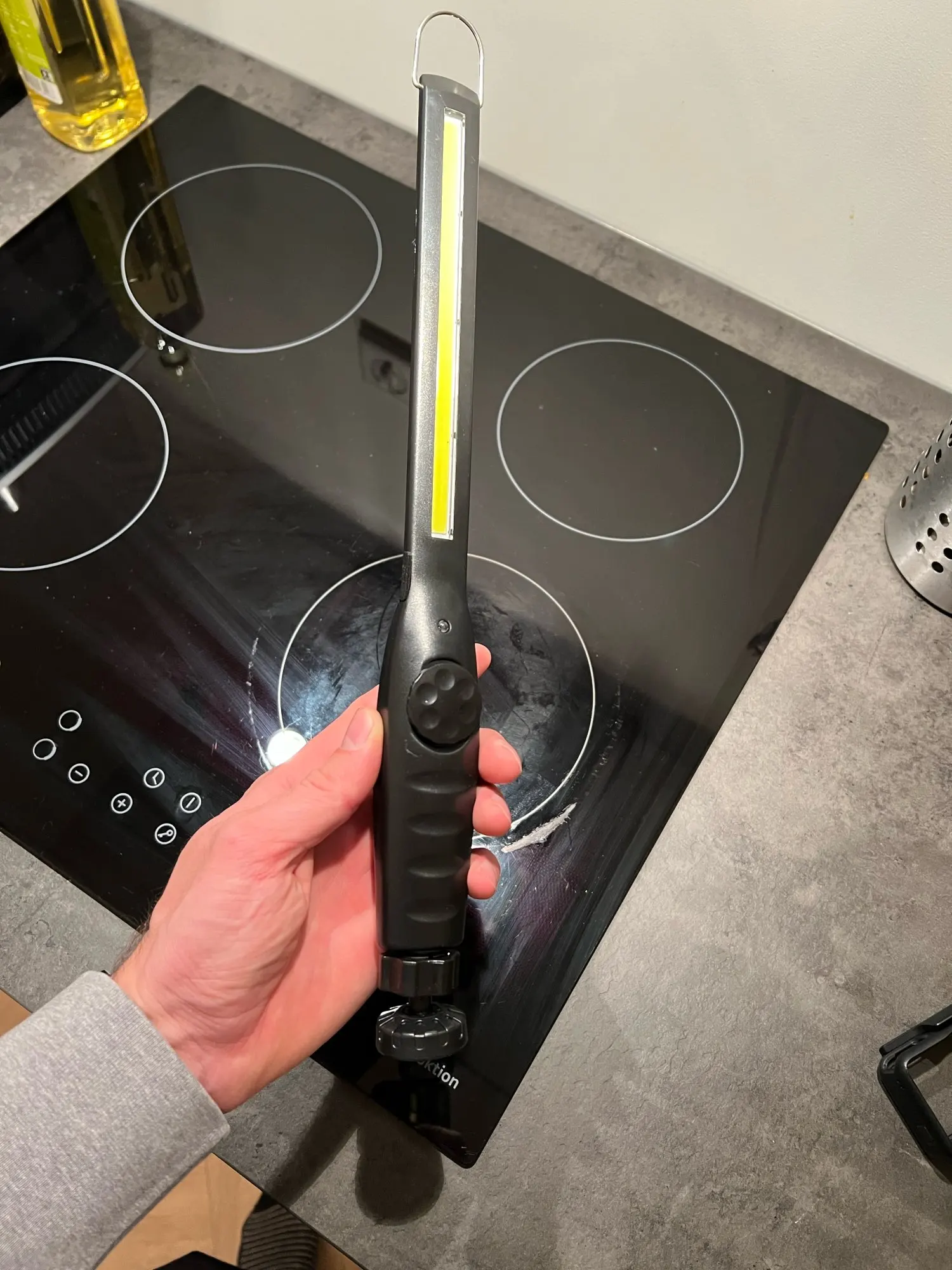 Шарнирное соединение и основание оснащены магнитом 20 фунтов, который можно снять, чтобы укоротить профиль 40 чипов COB светодиодный array, что обеспечивает плотность светильник до 850% больше светодиодный чем светодиоды SMD, потребляя при этом меньше энергии