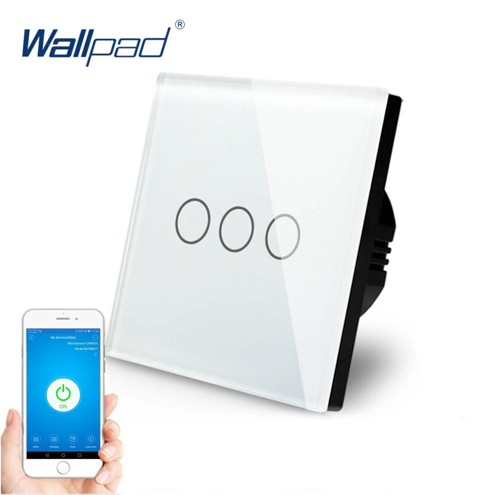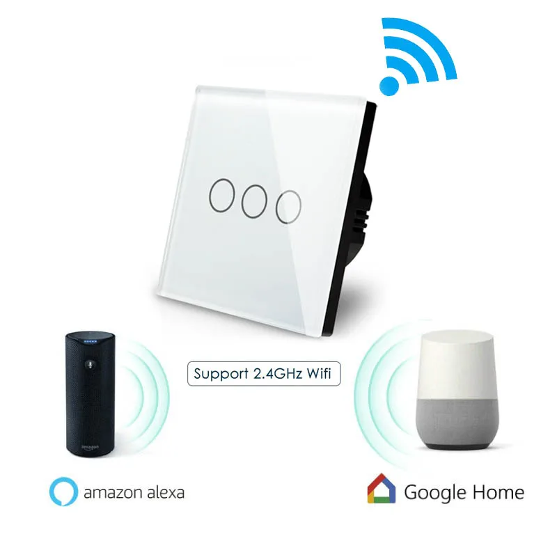 3 Gang WIFI Alexa Google home IOS Android Control сенсорный выключатель Wallpad EU UK 3 Gang 1 Way Glass Wifi Smart Wall Switch