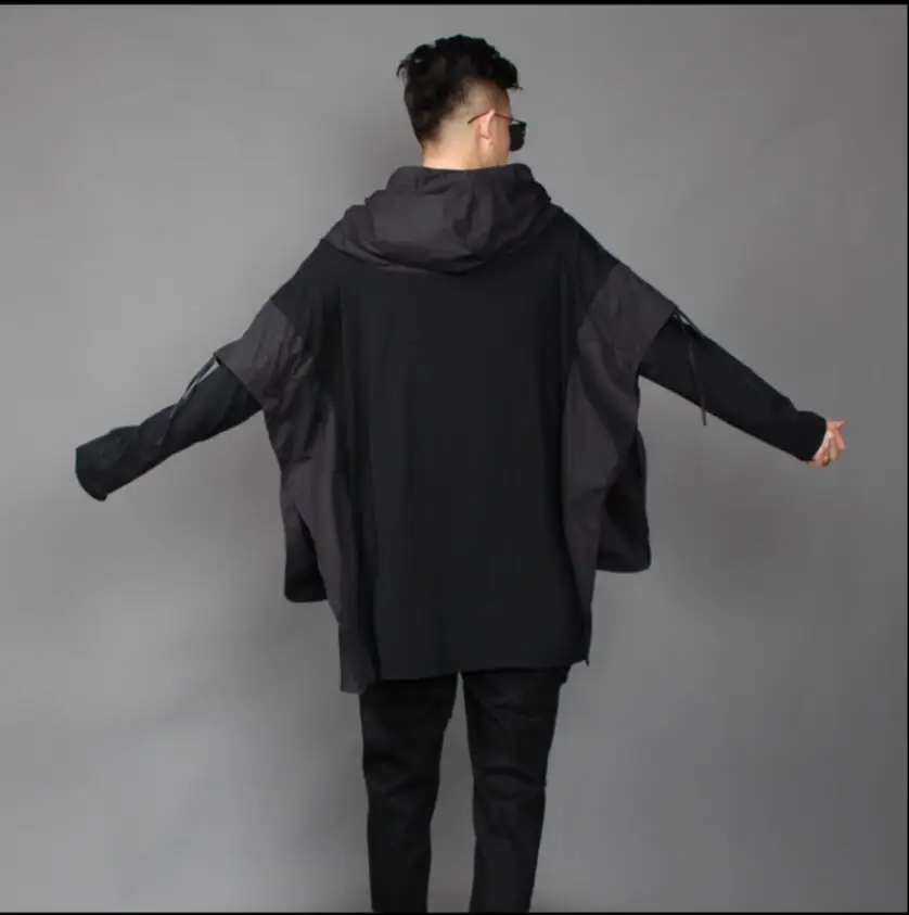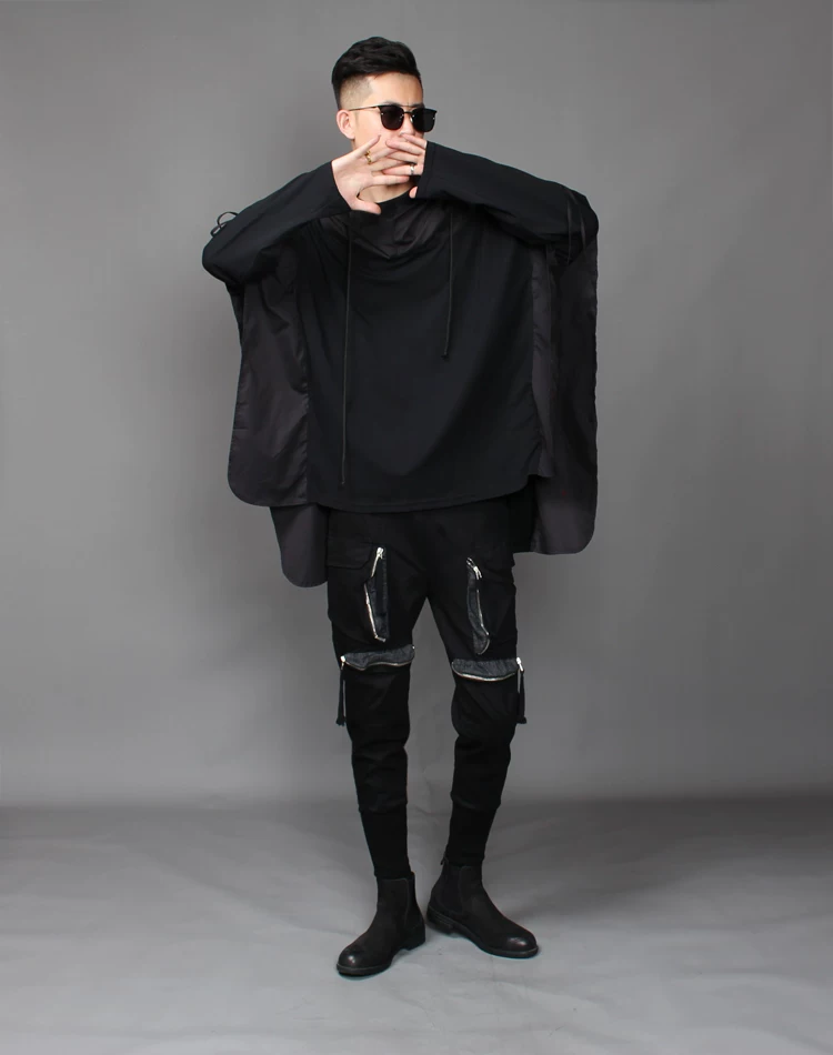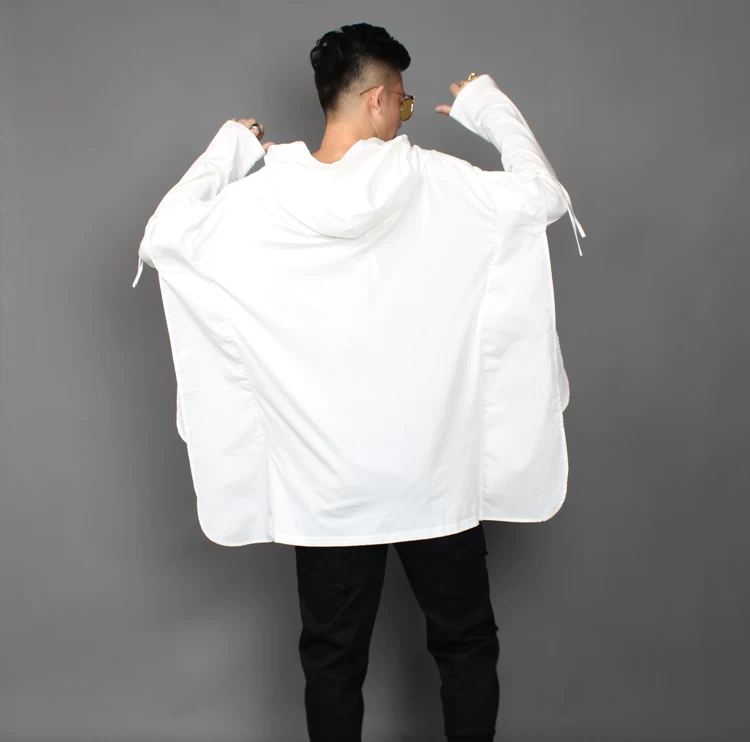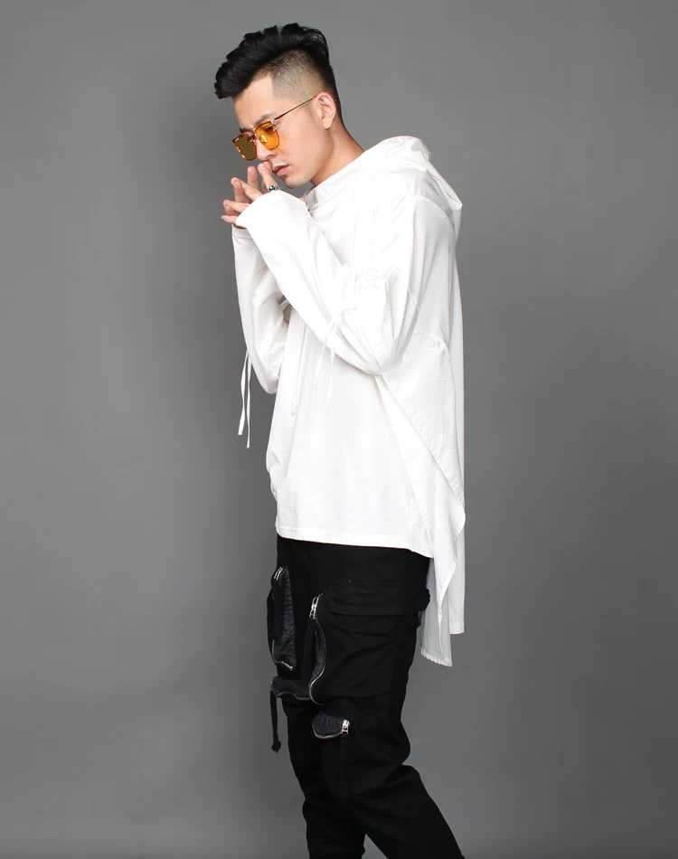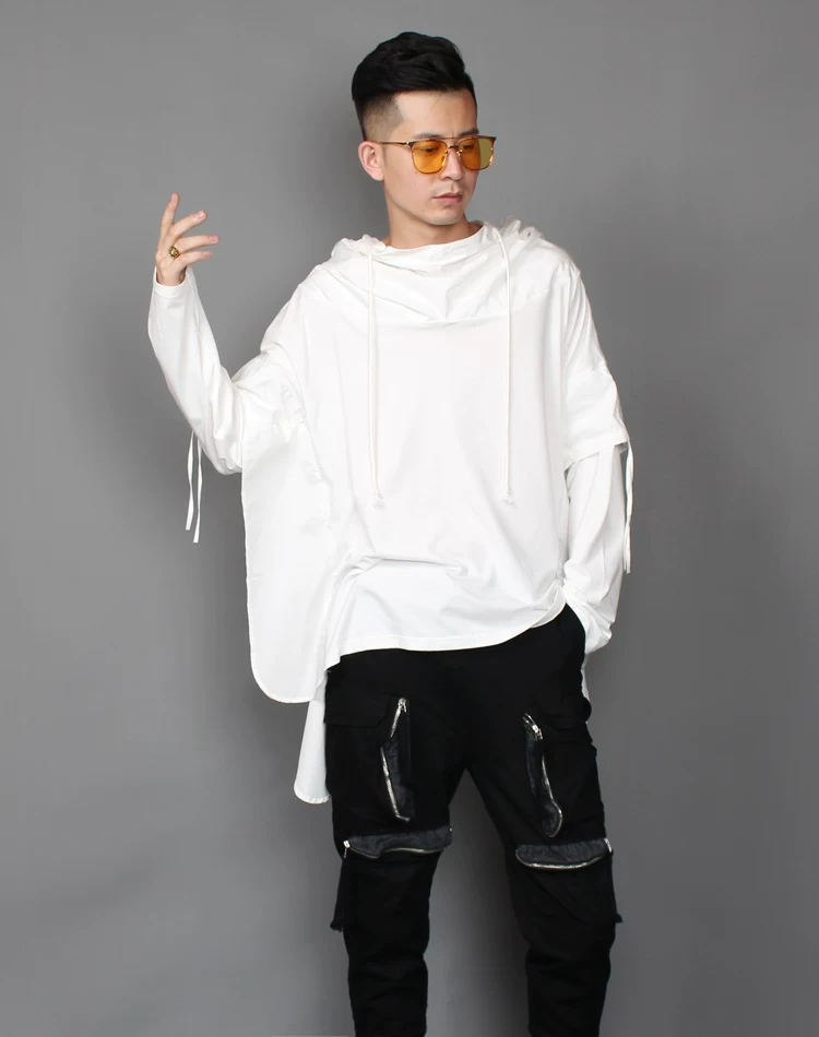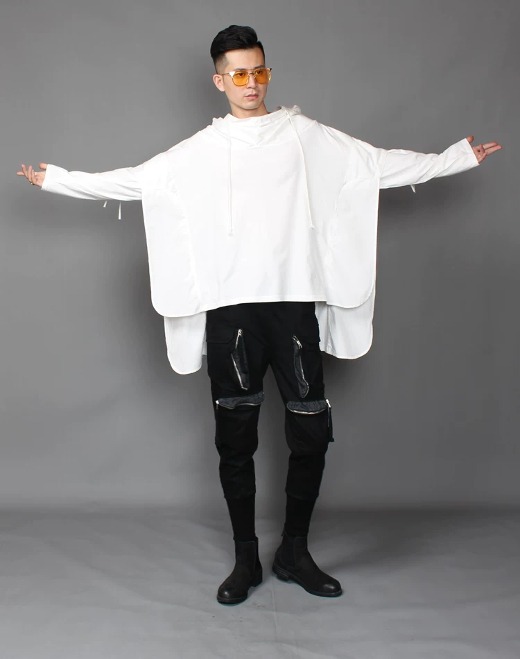 2016 летняя новая модная мужская футболка с коротким рукавом и капюшоном, асимметричная тонкая рубашка с коротким рукавом, костюмы для шоу в ночном клубе