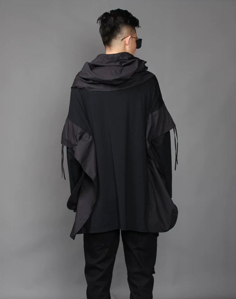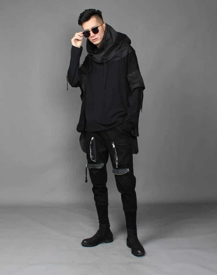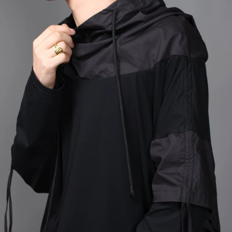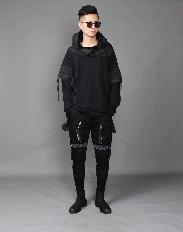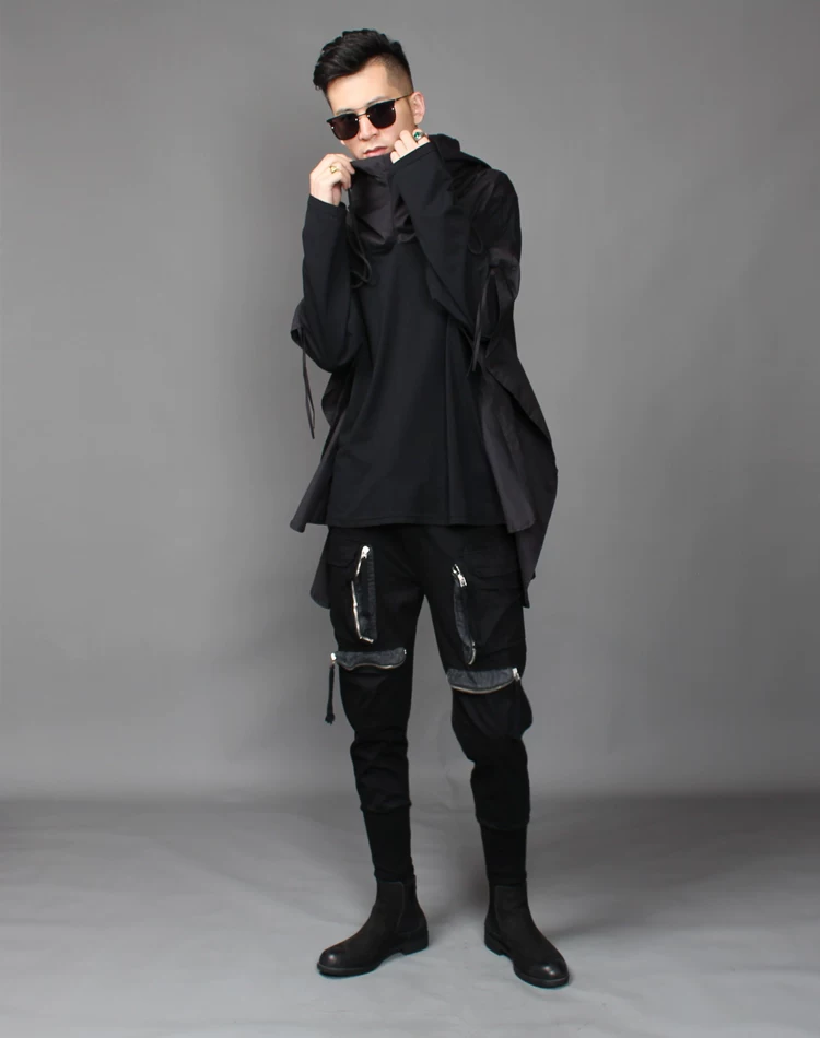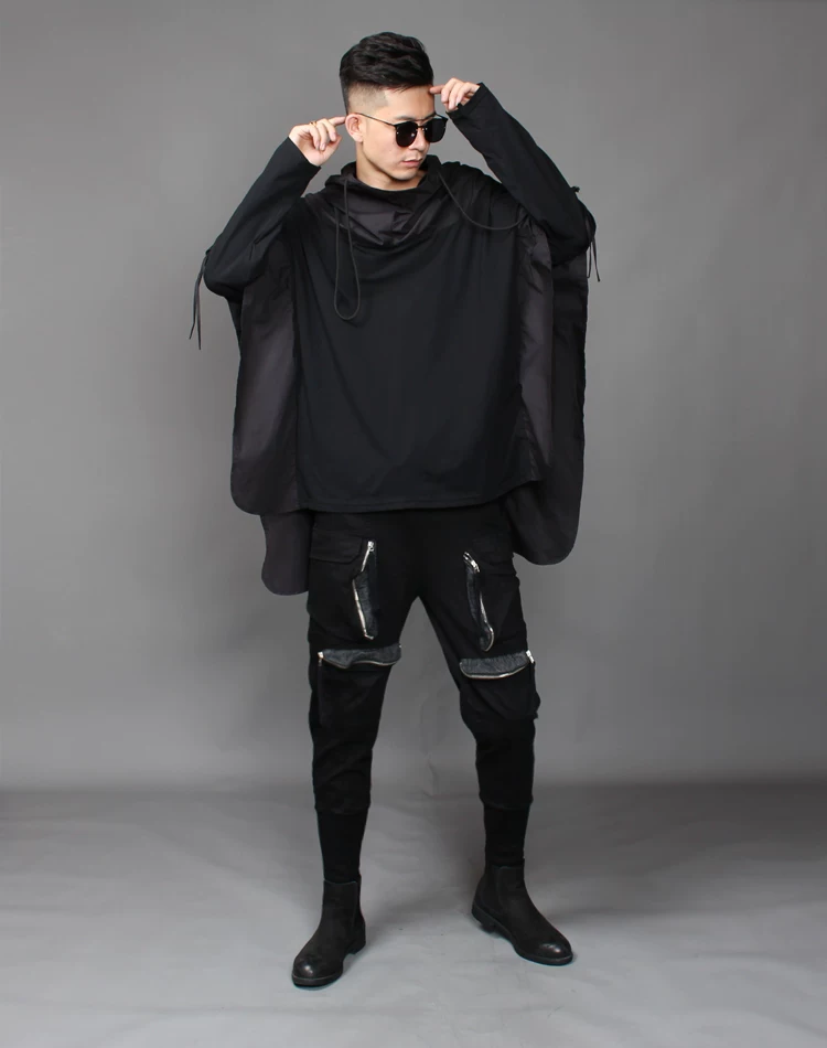 2016 летняя новая модная мужская футболка с коротким рукавом и капюшоном, асимметричная тонкая рубашка с коротким рукавом, костюмы для шоу в ночном клубе