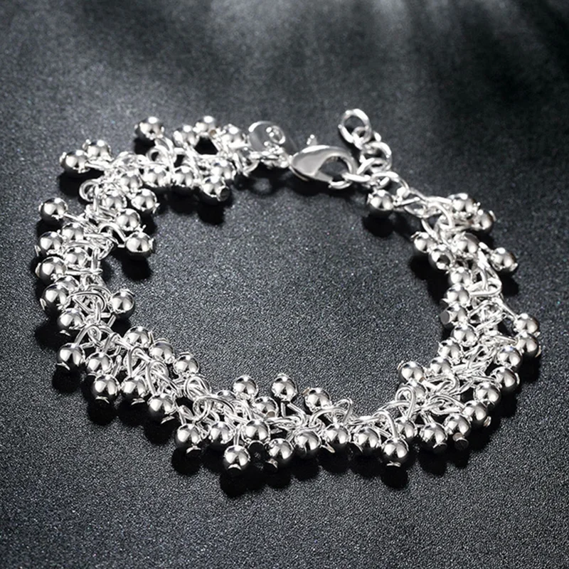 Горячая Распродажа ювелирных изделий из серебра 925 пробы модный гладкий виноград бусины шар браслет ожерелье для женщин свадебный аксессуар