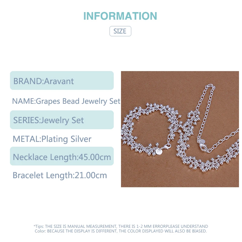 Горячая продажа 925 Серебряный ювелирный набор модный гладкий виноград бусы шар браслет ожерелье для женщин Свадебные аксессуары