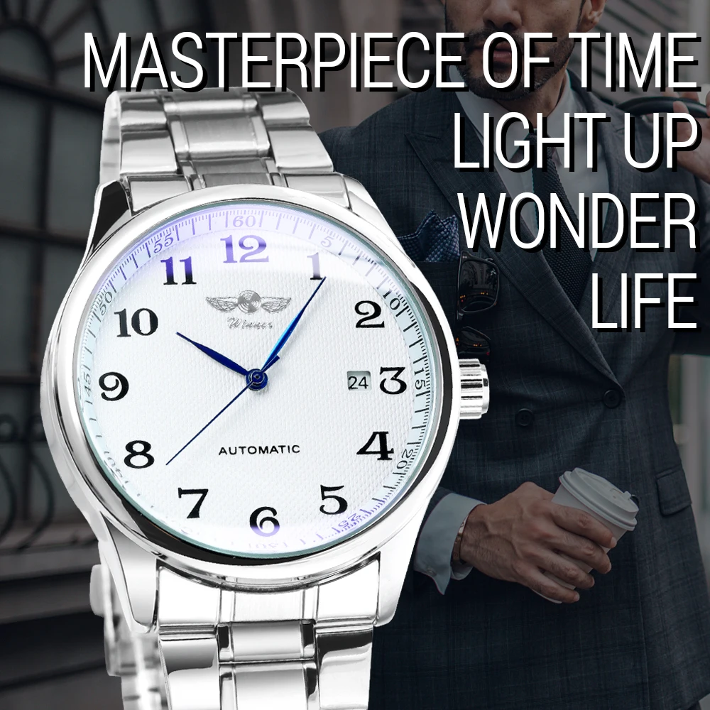 Механические часы WINNER, мужские автоматические наручные часы, лучший бренд класса люкс 2021, мастер-часы с календарем, классические часы со стальным ремешком