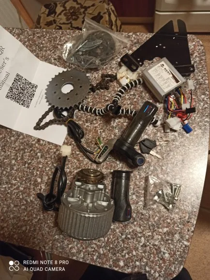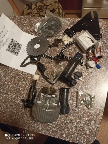 Очень быстрая доставка. Я давно покупаю на Алиэкспресс. Этот продавец доставляет быстрее всех. Скажу сразу - чуда нет! Товар насыпан в коробку вперемешку с пенопластом. Результат такой упаковки сломана ручка газа. В контроллере не хватает одного транзистора. Но. Комплект полностью рабочий. Кто будет покупать такой набор - покупайте каждую деталь отдельно. Упаковка надёжней. Цена меньше. Качество лучше. Покупайте у этого - же продавца. Ручку газа поставить можно только слева. ( Хота это намного удобнее для велосипеда). Трещотка на моторе плохая по качеству. Предаётся покупать другую. (Разъяснения в интернете). Крепёжная пластина только под специальную модель велосипеда. Есть ли смысл покупать? Цепь маленькая - бесполезная. Звёздочка и её крепление - не нужны. Мотор который достался мне не гудит и не трясётся. Но так бывает не всегда.