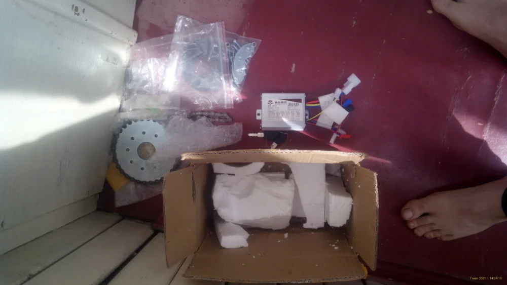 Все дошло. Немного развалилась коробка, но все целое. При установке немного пришлось подогнать пластину крепления двигателя, но это особенности моего велосипеда.