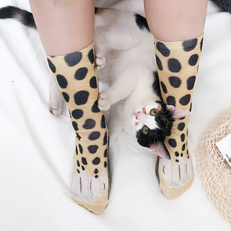 Носки унисекс до щиколотки, забавные мягкие рождественские Модные леопардовые, тигровые, с 3D имитацией животных, кошек, в стиле Харадзюку