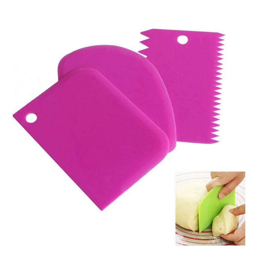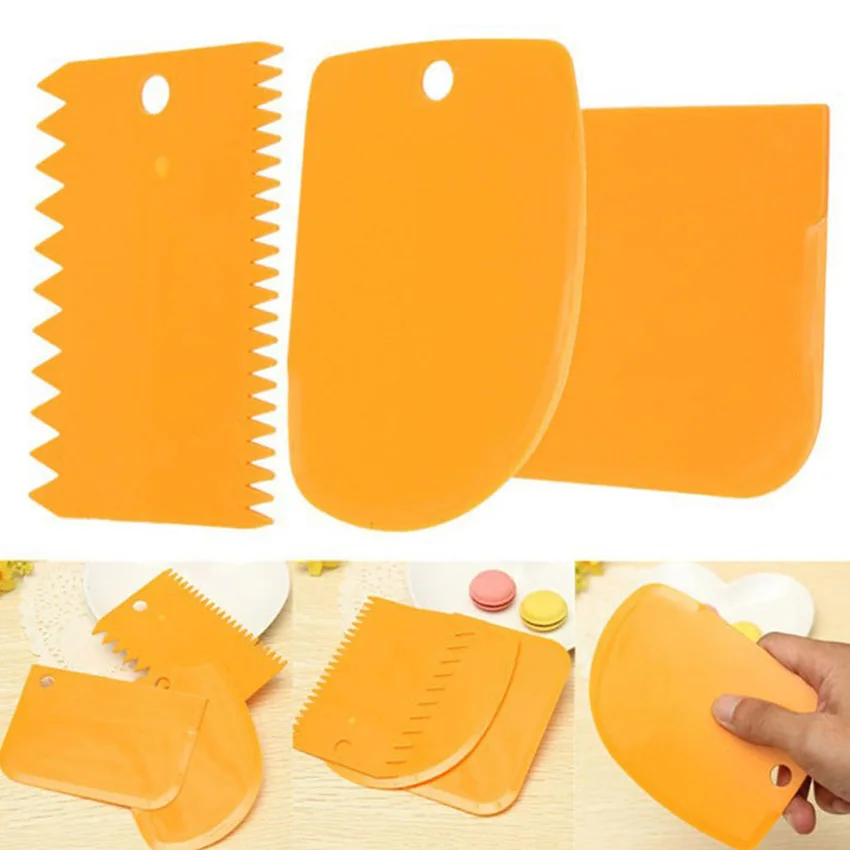 168048669991.3 шт Пластиковые Тесто глазурь скребок для мастики Торт Кондитерские инструменты для украшения выпечки простые гладкие зубчатые края шпатели