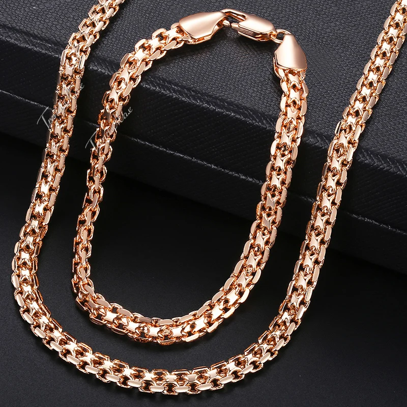 Женский комплект украшений Davieslee, браслет из розового золота 585 пробы, ожерелье из цепи Бисмарк, Прямая поставка, ювелирные изделия для женщин 5 мм DGS275