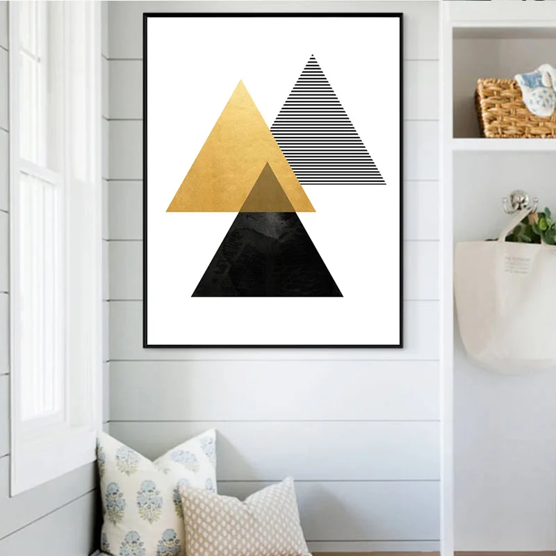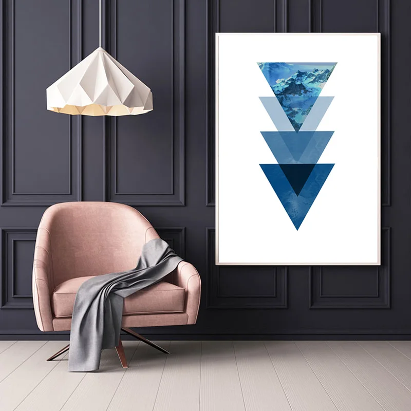 Современные Геометрические настенные художественные абстрактные Формы Солнце Горный холст живопись синие треугольники плакат скандинавский Декор для гостиной в рамке