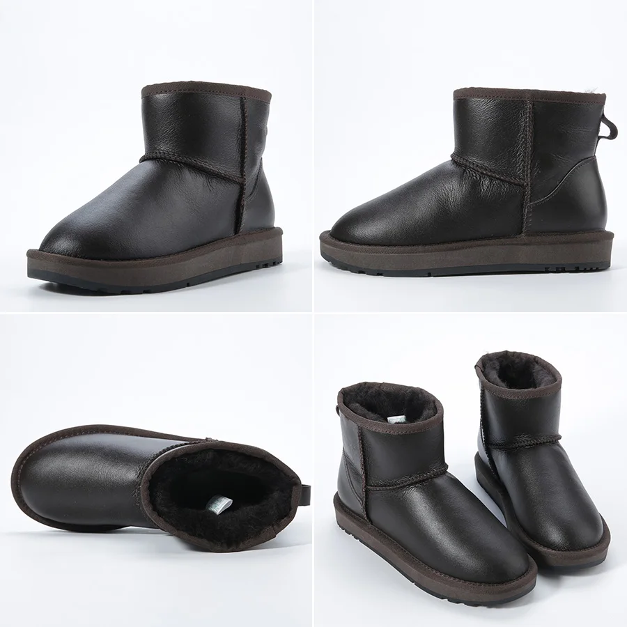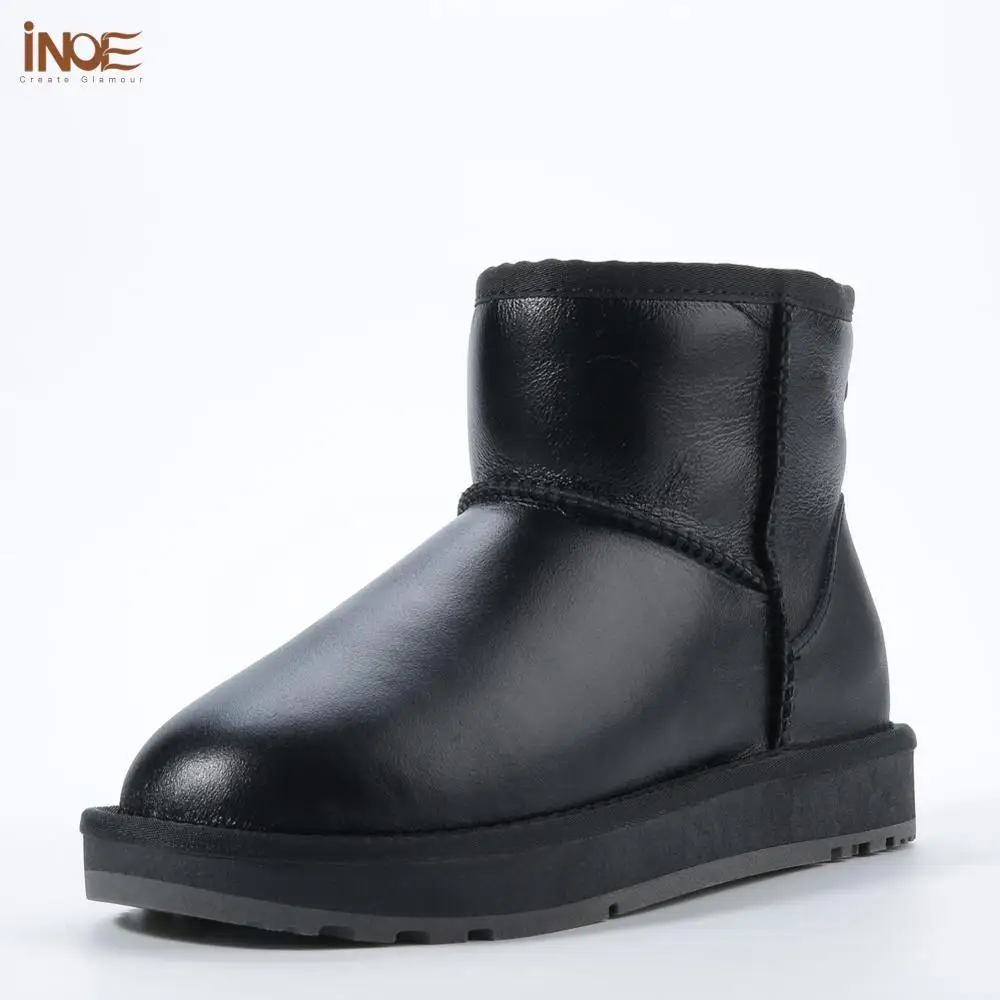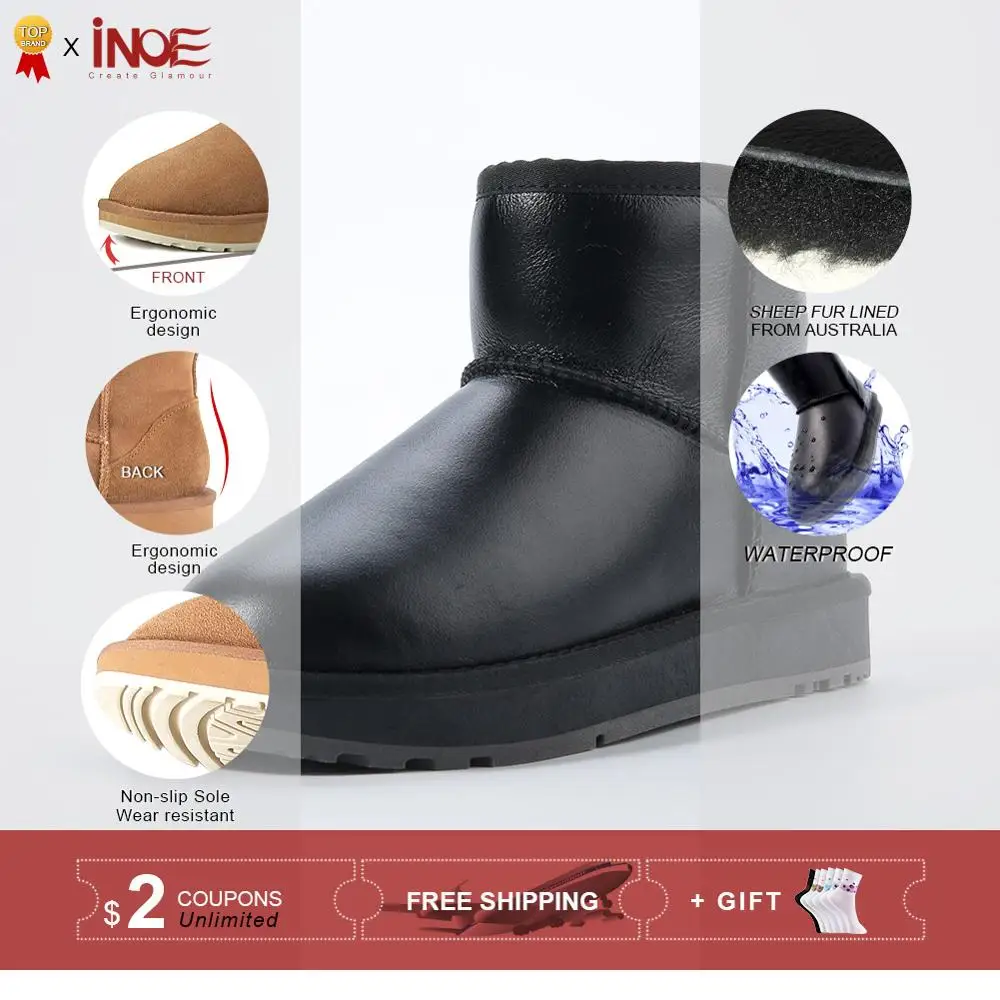 INOE Непромокаемые короткие зимние сапоги из овечьей кожи с подкладкой из натурального меха для женщин Повседневная теплая обувь по щиколотку Черный Серый 35-44