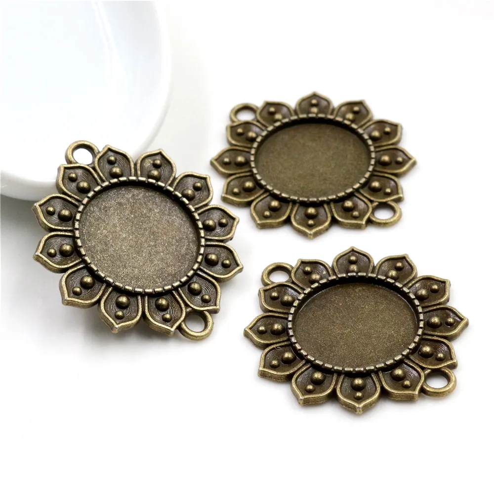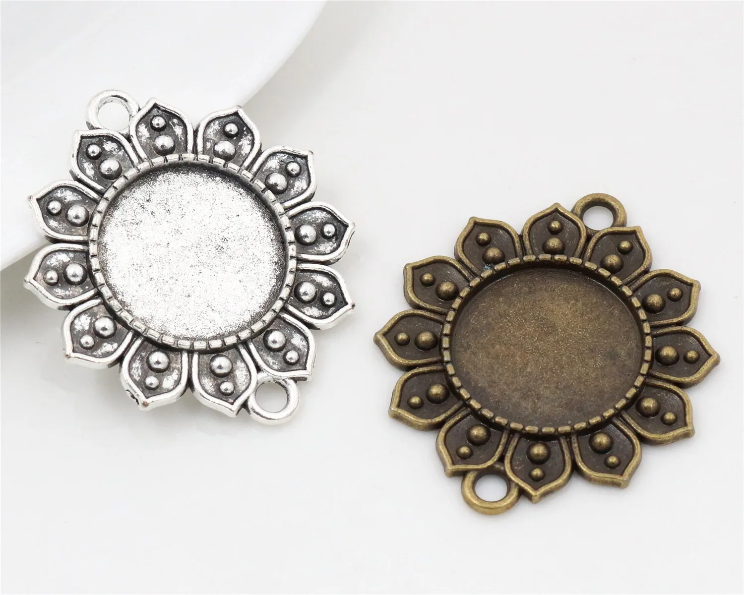 10 шт 18 мм Внутренний размер античная бронза и посеребренный цветок соединение Стиль кабошон базовая Камея Подвеска Подвески