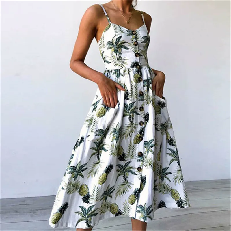 Летнее женское сексуальное платье на бретельках с принтом на карман...