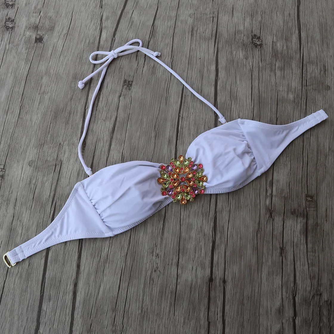 Комплект бикини, Белый Топ, женский купальник, бикини, красивые купальные костюмы со стразами, сексуальные бикини для девушек, бразильский купальник-бандо