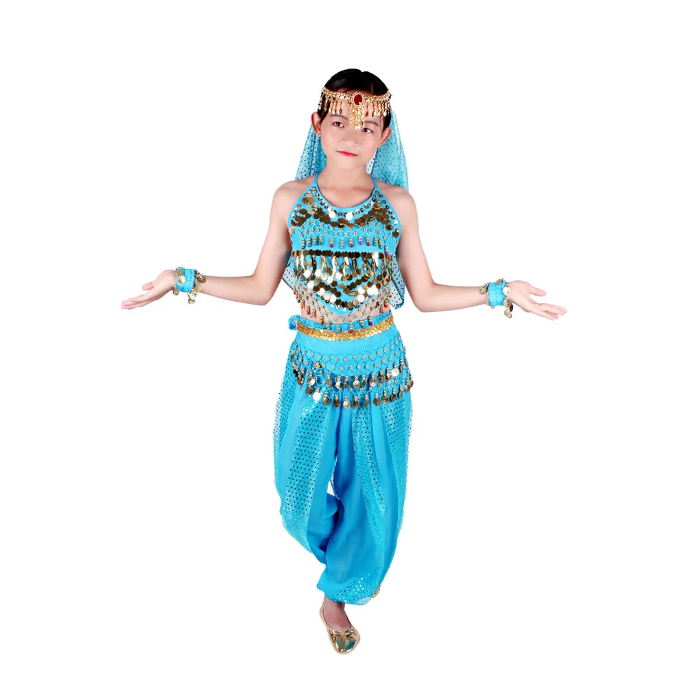 Танцевальная одежда, костюмы для танца живота, комплект для детей, для восточных танцев, для девочек, для танца живота, индийская одежда для танца живота, детский индийский танец