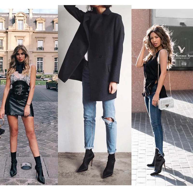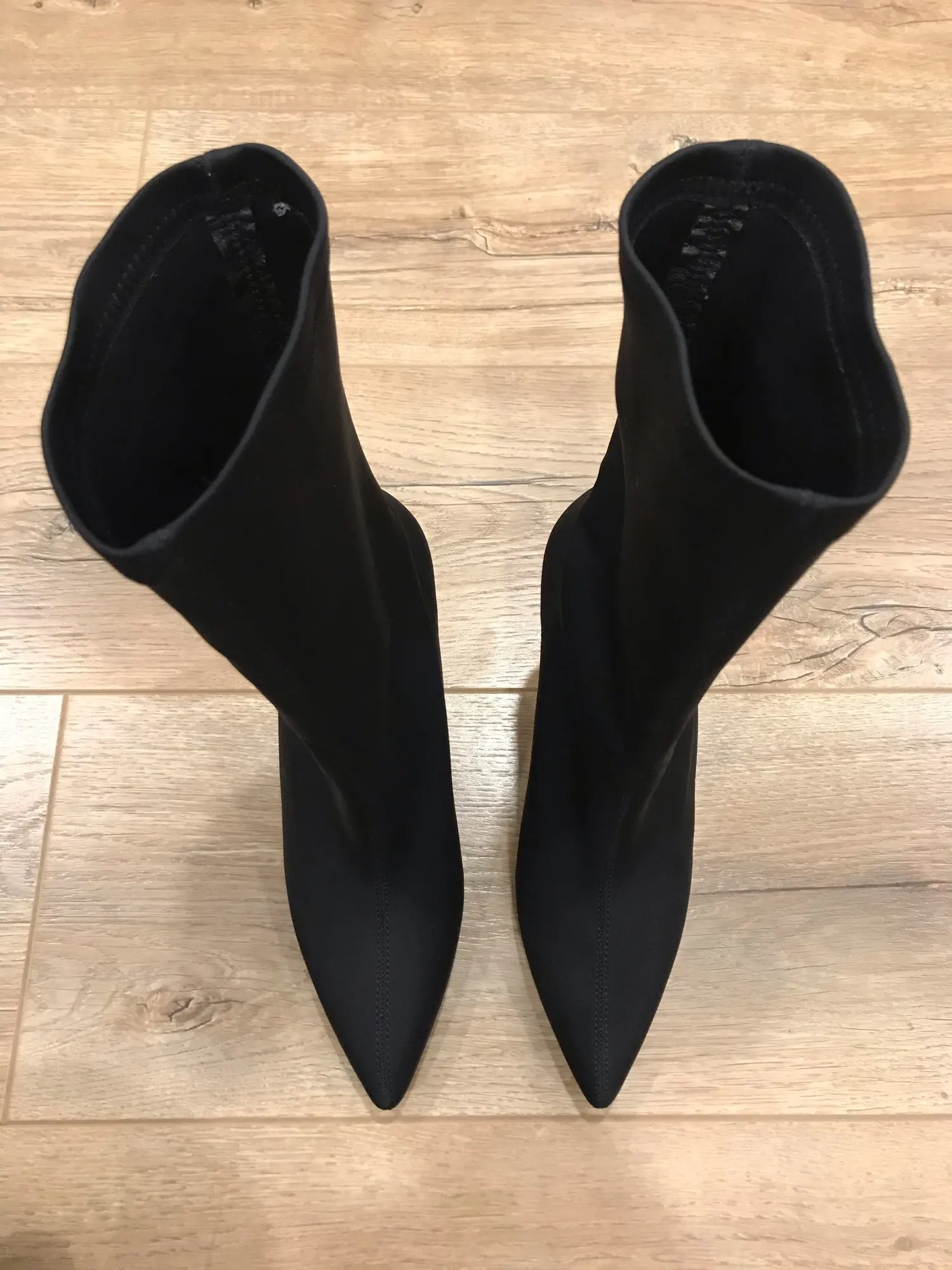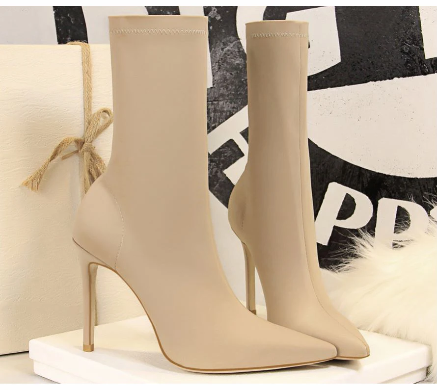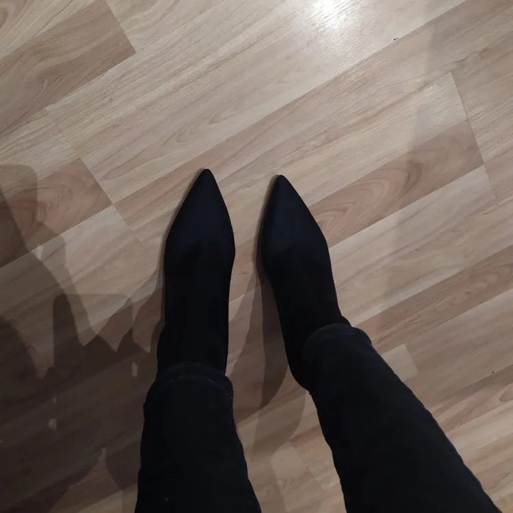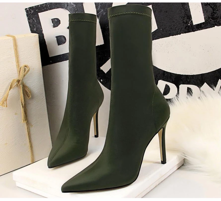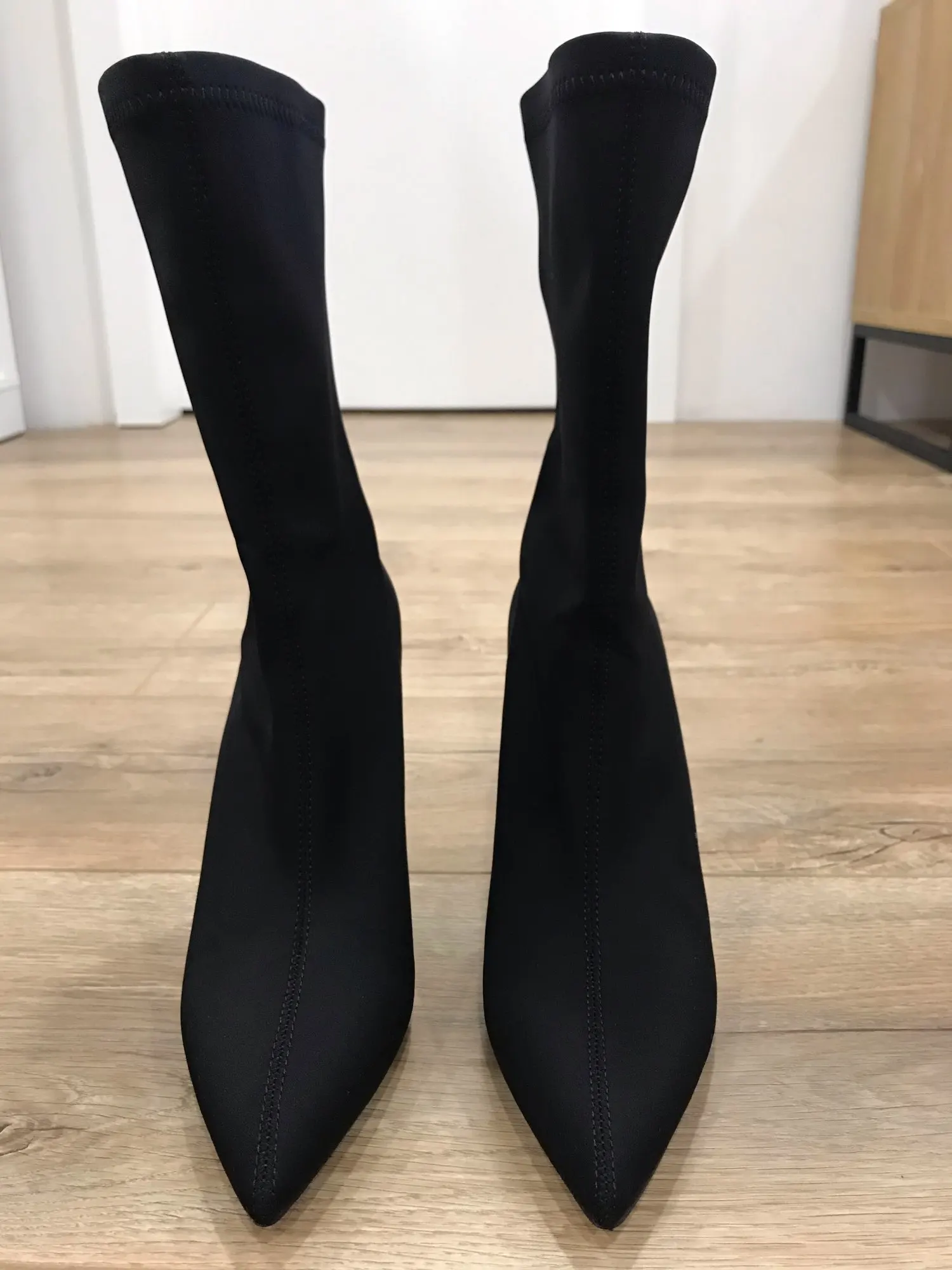 Женские сапоги-чулки EOEODOIT, из лайкры, с острым носком, высокие каблуки-шпильки, размера плюс см, 9,5 см