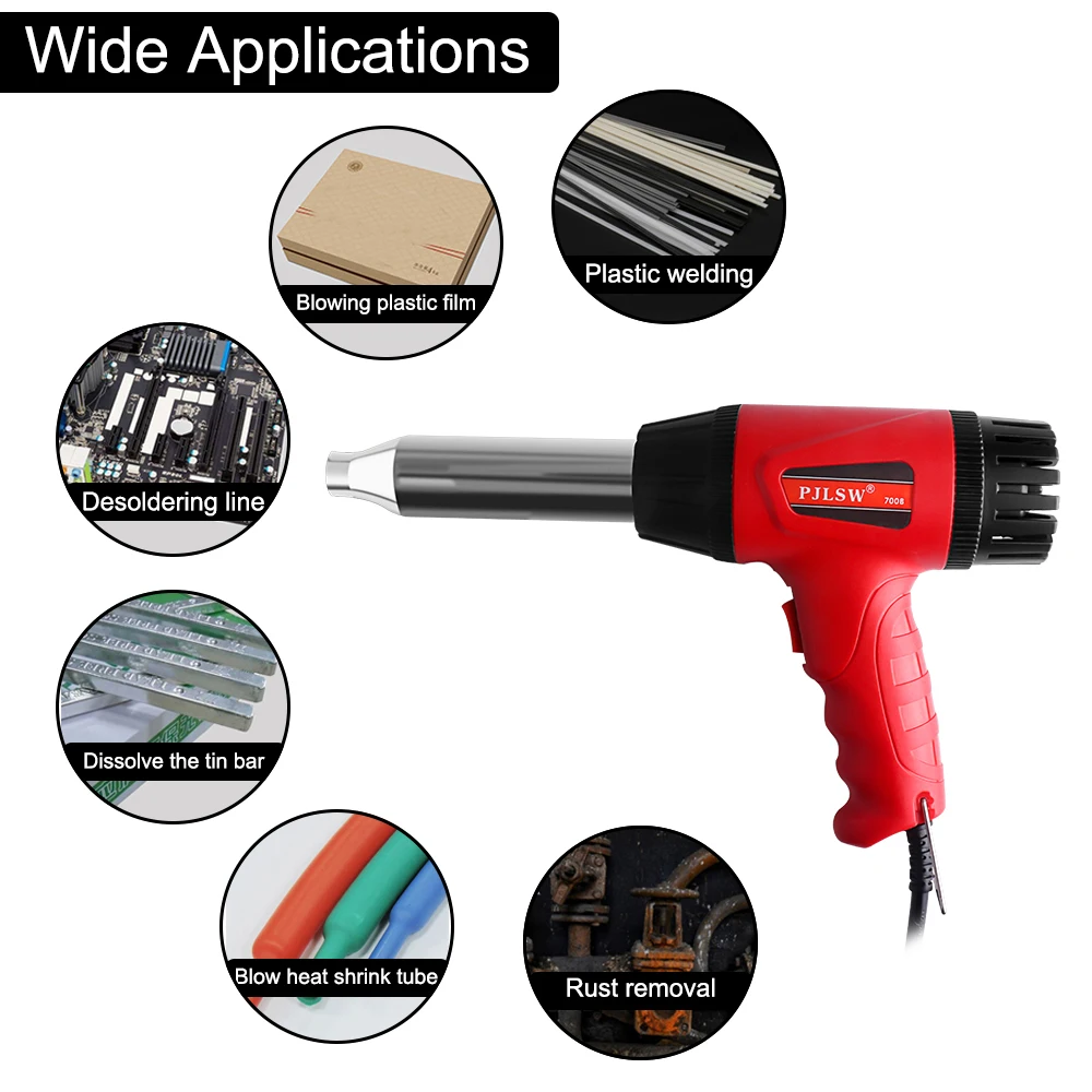 2 после того, как пистолет горячего воздуха используется в течение определенного периода времени, передняя воздушная насадка будет черной, что также является нормальным явлением и не влияет на работу машины.