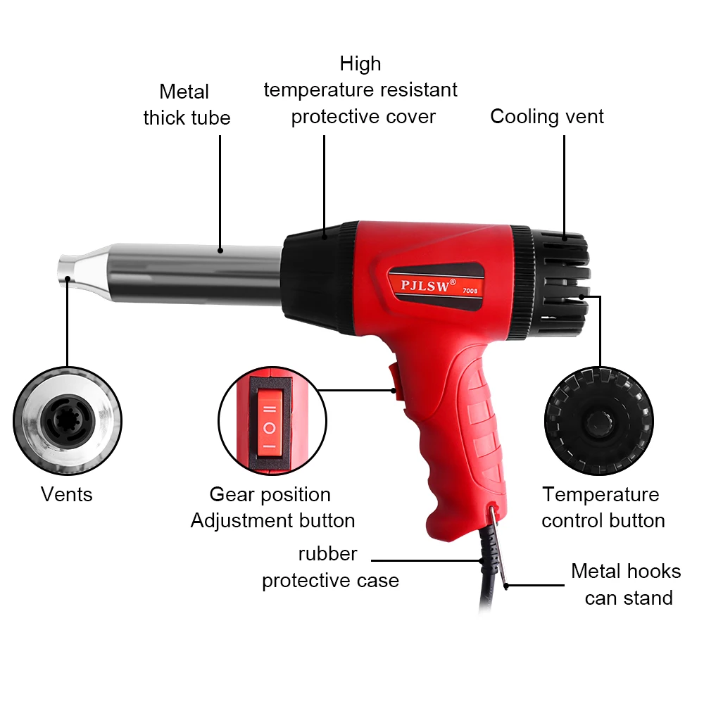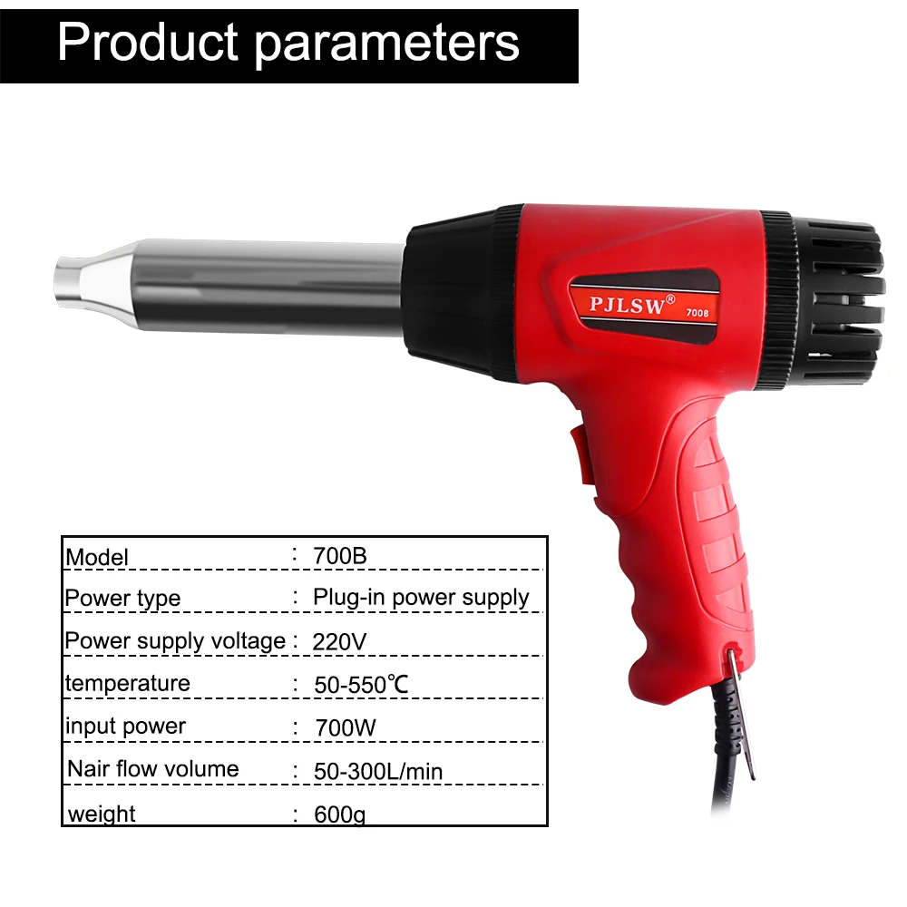 3. Когда используется тепловой пистолет, температура слишком высокая. Для того, чтобы тепловой пистолет был более длительным сроком службы, его необходимо поддерживать и принимать во время использования.