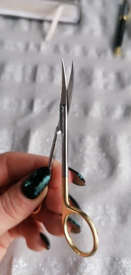 Ножницы не моей мечты, но в целом не плохо. Ими можно подрезать ногтевую пластину. Для кутикулы в домашних и проф.условиях - не годятся. Не достаточно острые, потому что рвут кожу. Их либо дополнительно дозатачивать, либо оставить как есть для ногтей. Смотря, какую цель вы преследуете. У меня были заказаны ножницы с изогнутым кончиком. Ах, да, у меня ножницы люфтят ( видимо центровик скрепляющего гвоздя) подустарел. Нужно будет как-то чем-то смазать.
